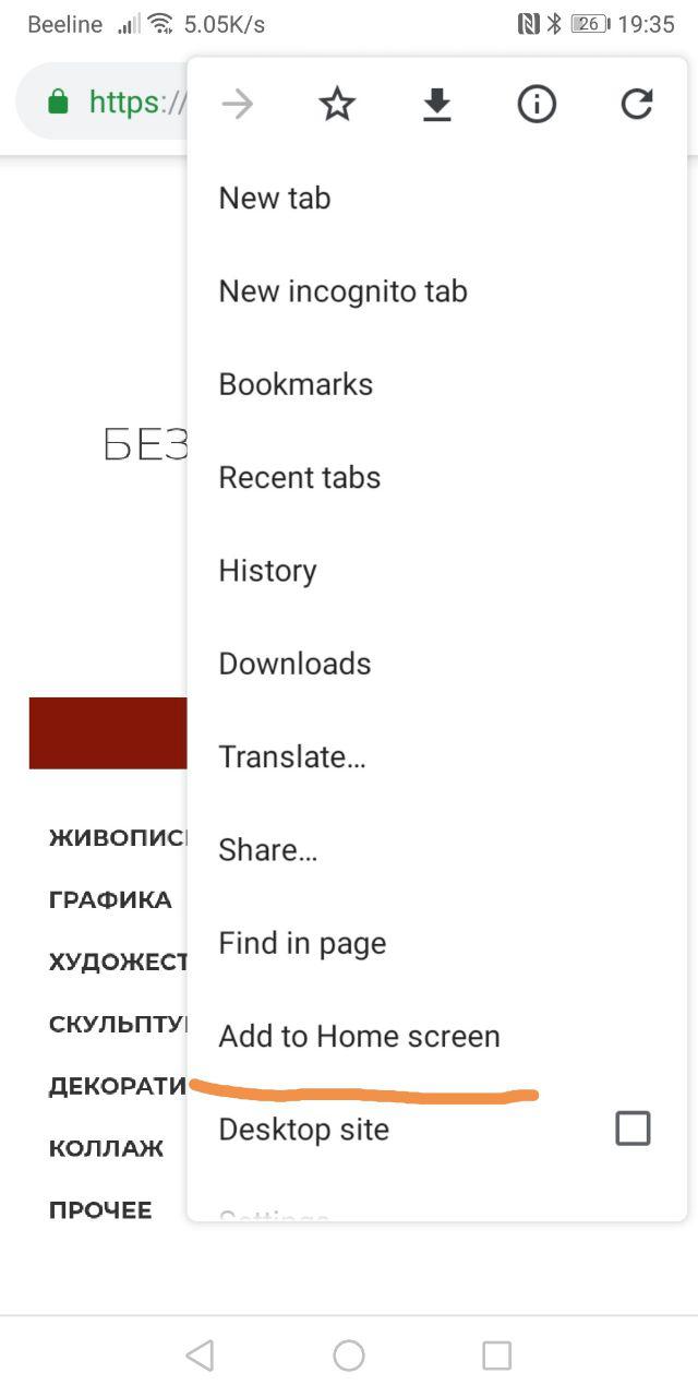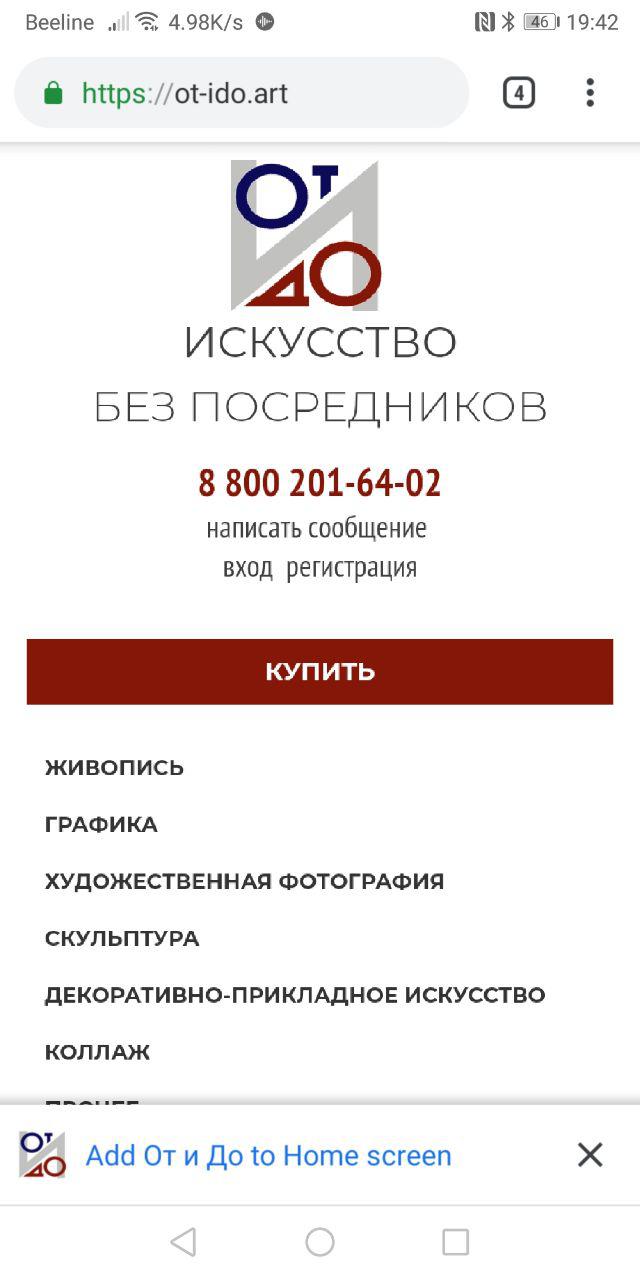 Откройте главную страницу нашего сайта через Chrome. После первого запуска сайта внизу появится панель с предложением установки приложения.