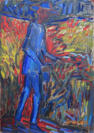 Автор Полгар Митя(1966-2018), в 1990 окончил Полиграфический институт. После института участвовал в выставках на знаковых московских (Дворец молодежи, галереи «На Каширке», «Риджина» и так далее) и зарубежных площадках,персональные экспозиции (на Кузнецком в Москве, в «Русском доме» в Берлине – 1996, 1998), приобретение вещей российскими и западными коллекционерами (только в частном музее Ральфа Бартолайта-немецкого журналиста - тридцать три работы). Примерно пятнадцать-двадцать лет интенсивной деятельности – и впечатляющий результат, который сейчас, после смерти автора, становится возможно в какой-то степени оценить и попытаться вновь ввести в обиход.