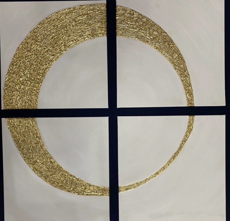 Интерьерная картина состоит из 4 частей каждая часть 50*50 см , холст , акрил , поталь .