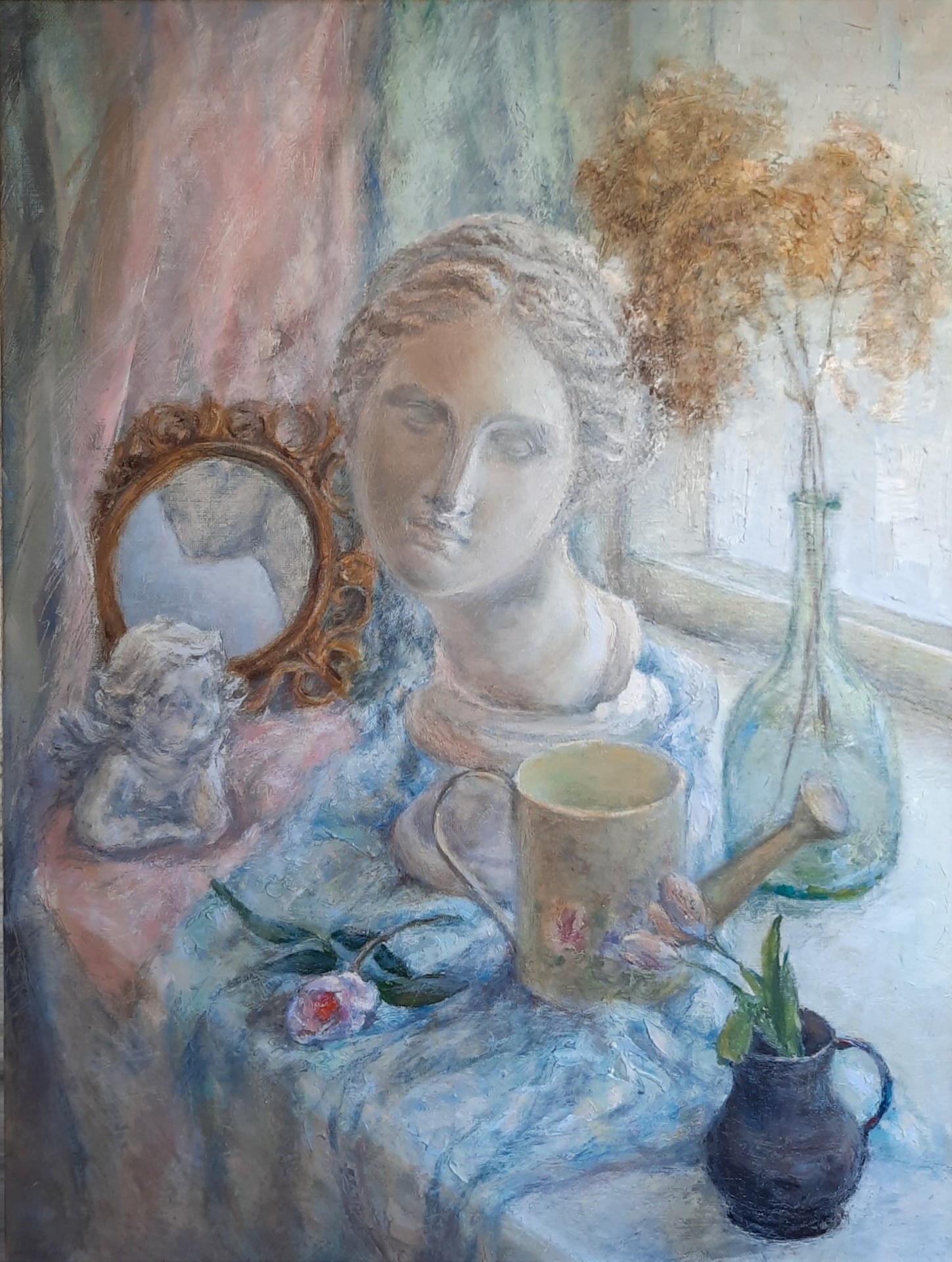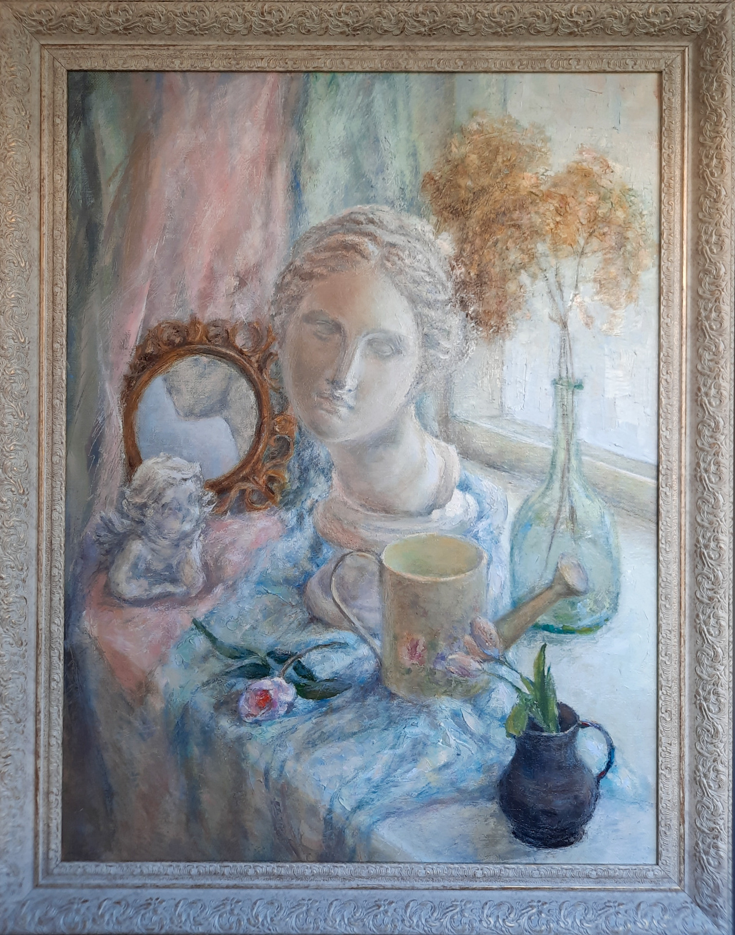Работа заняла 1-е место в категории "Натюрморт" в номинации " Профессионал" в международном проекте " Продолжение следует". Оформлена в раму.