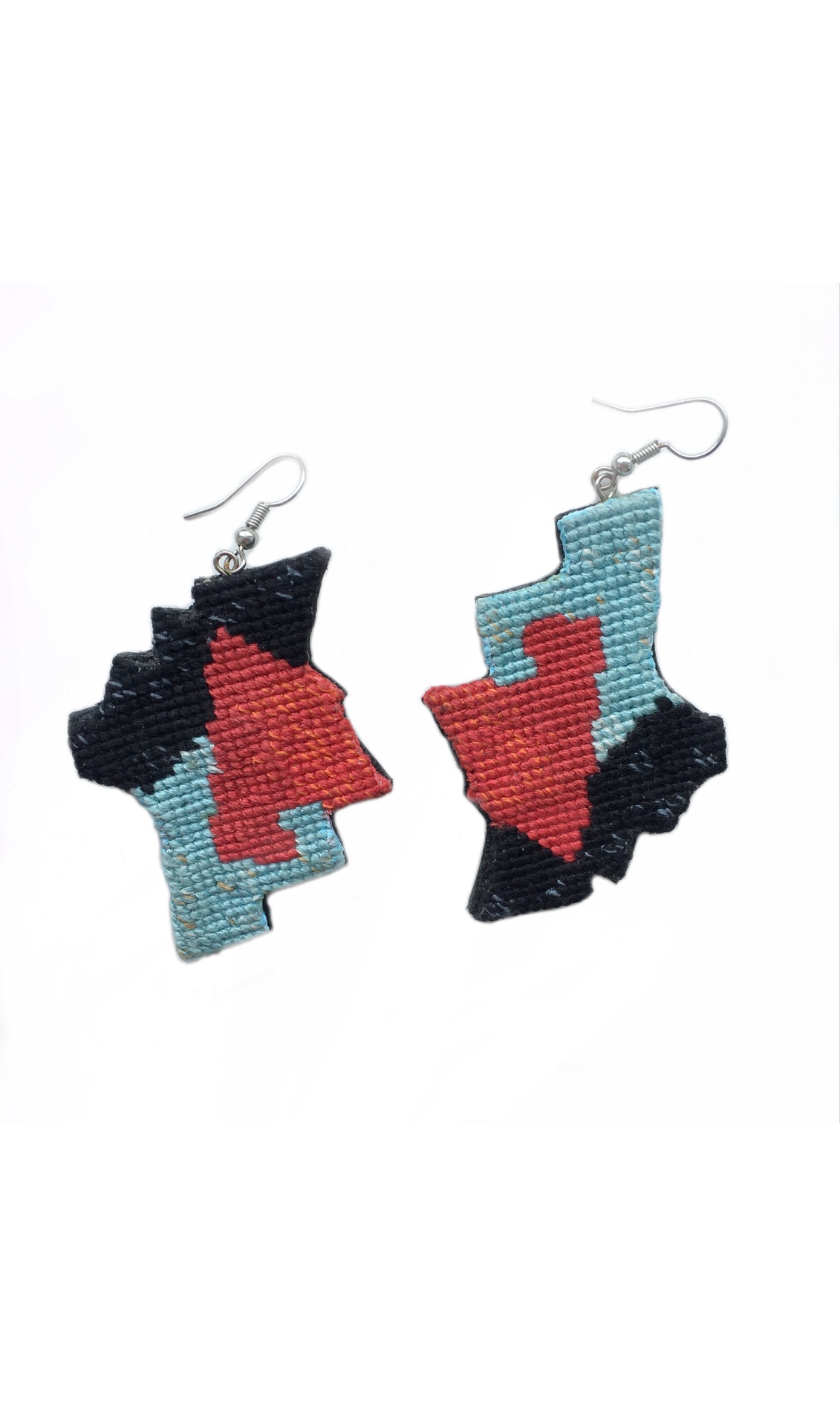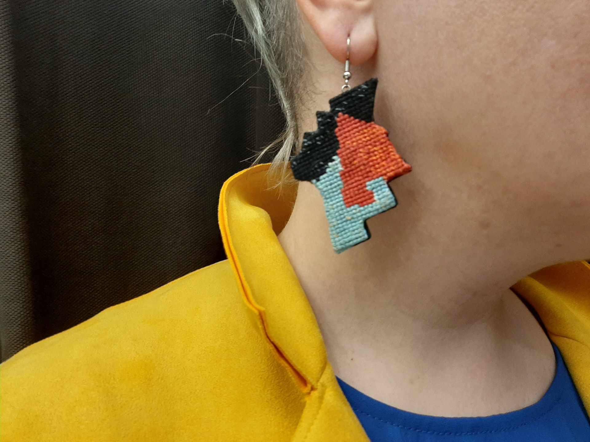 Серьги по мотивам заумных наклеек Ольги Розановой, одной из амазонок русского авангарда. Длина со швензой, обратная сторона натуральная кожа чёрного цвета.