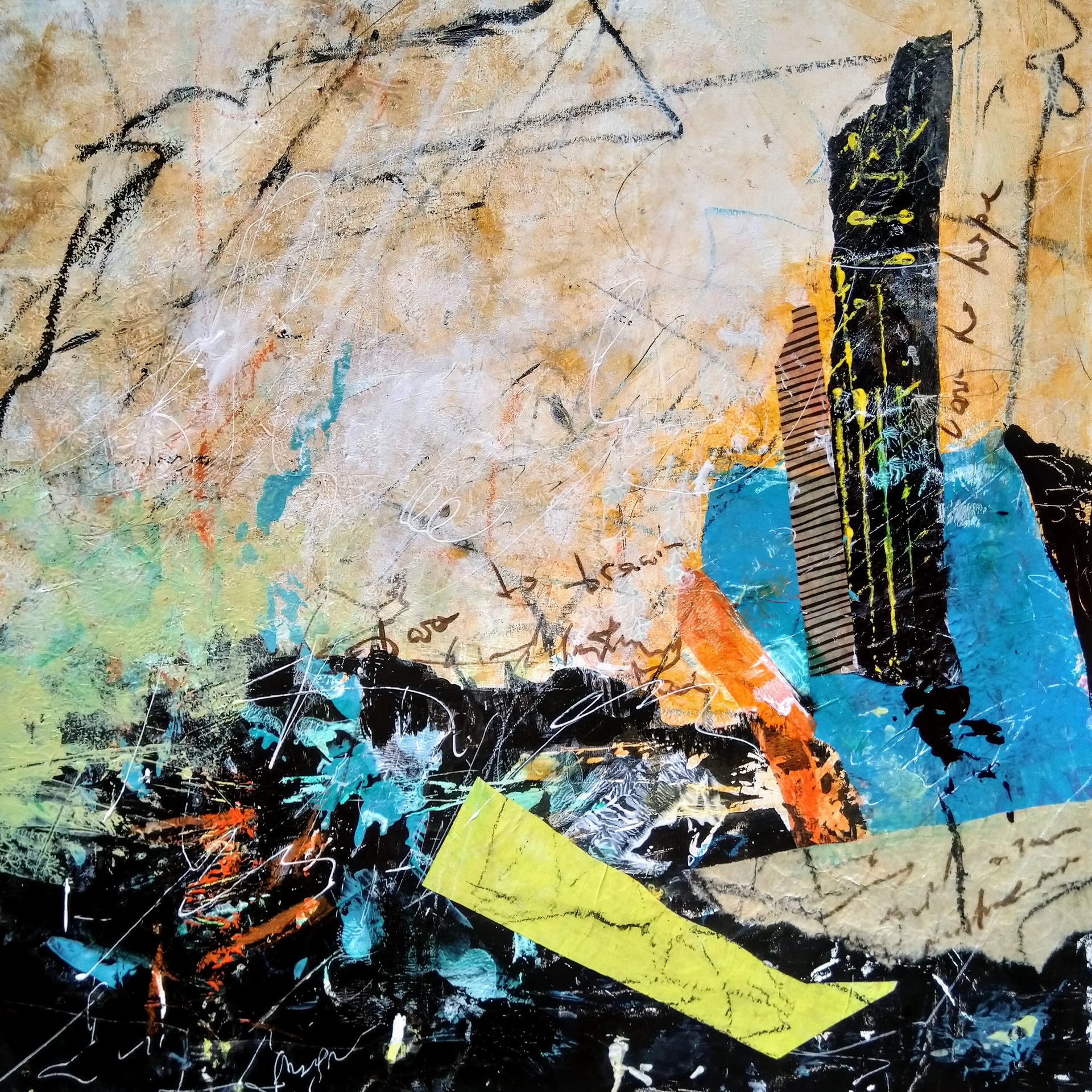 Картина Dare to Hope написана на бумаге акриловыми красками с элементами коллажа и смешанных техник. Оформлена в паспарту.