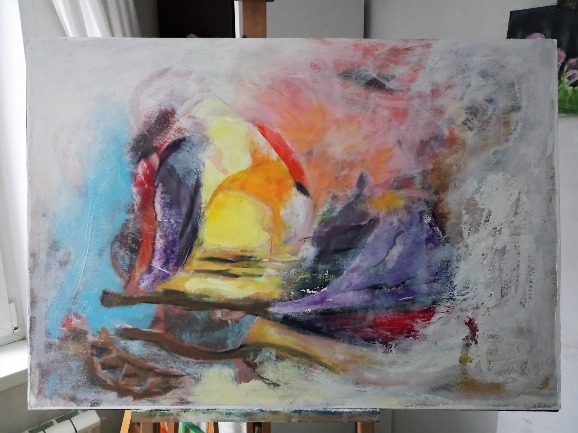 Картина написана на хрупком "пивном" картоне. История создания связана с "клубом ART_Eria", который несколько лет располагался в крипте Храма и был не только местом притяжения для художников и музыкантов, но помог, лично мне, сделать первый шаг к воцерквлению.