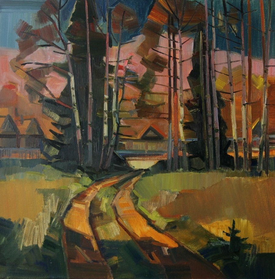 Давным -давно , когда было лето и в воздухе летали тучи насекомых, я пошел на пленэр. Рисовал рядом с домом, ведь когда вокруг лето и такая красота, то за чем ходить далеко? Наш дом стоял в лесу .Чтобы к нему подойти нужно было повернуть на грунтовую дорогу... а там жужжание пикирующих слепней и барабанные дроби дятла. А трава... И солнце, много-премного. И если пойти по дороге в лес, а потом обернуться, то открывается вид на ворота-портал, обрамляющий въезд-вход в мое Лето. А может быть и наше?
