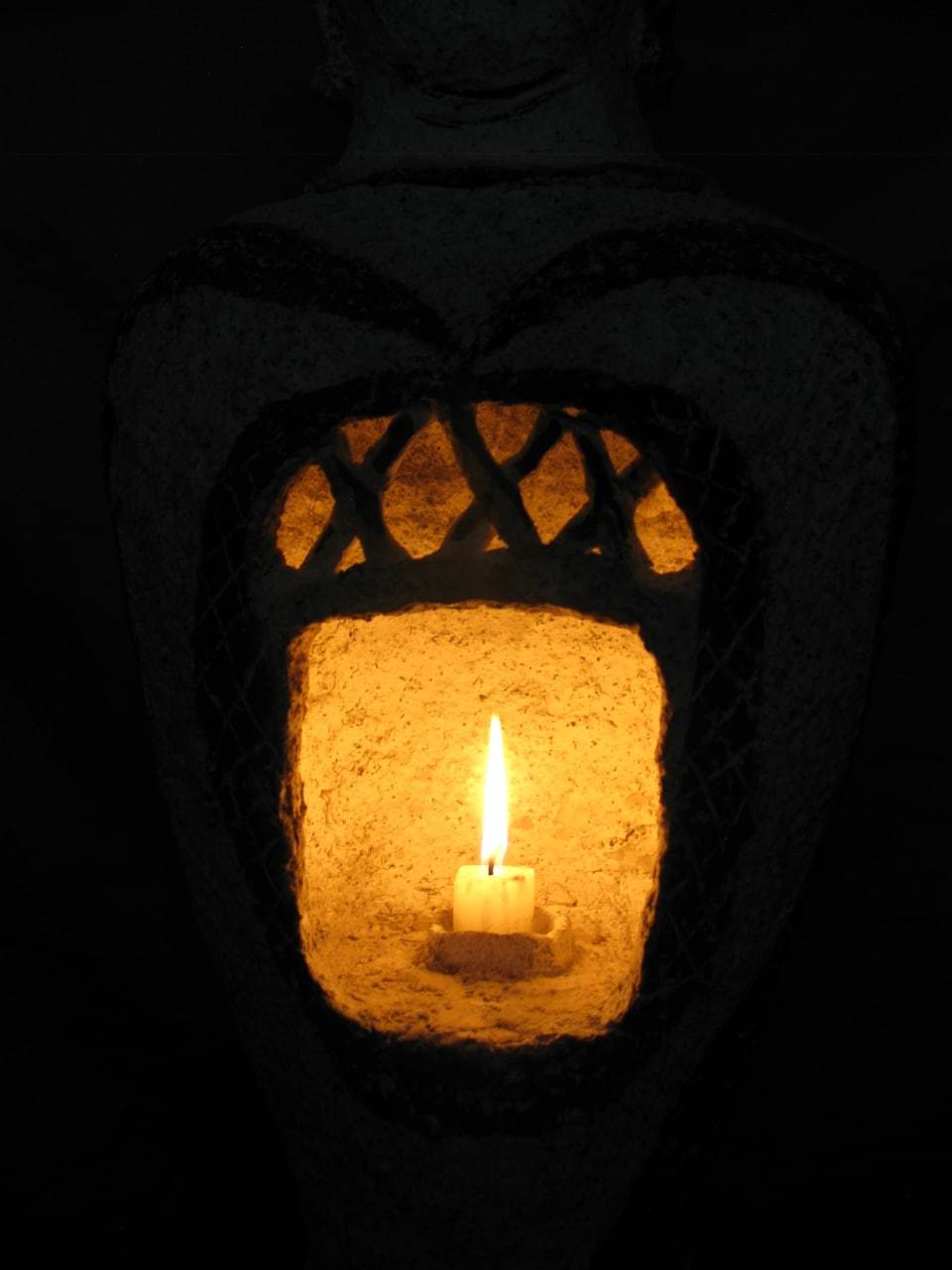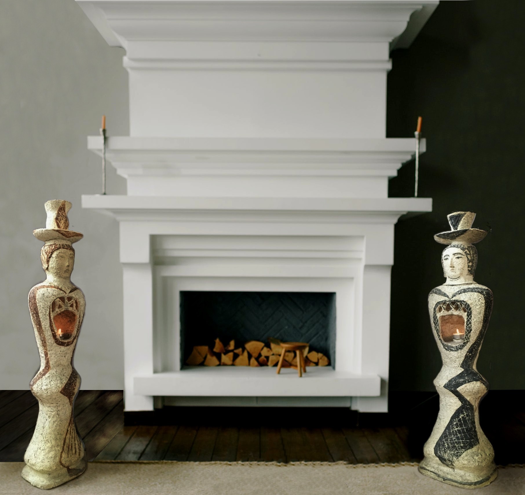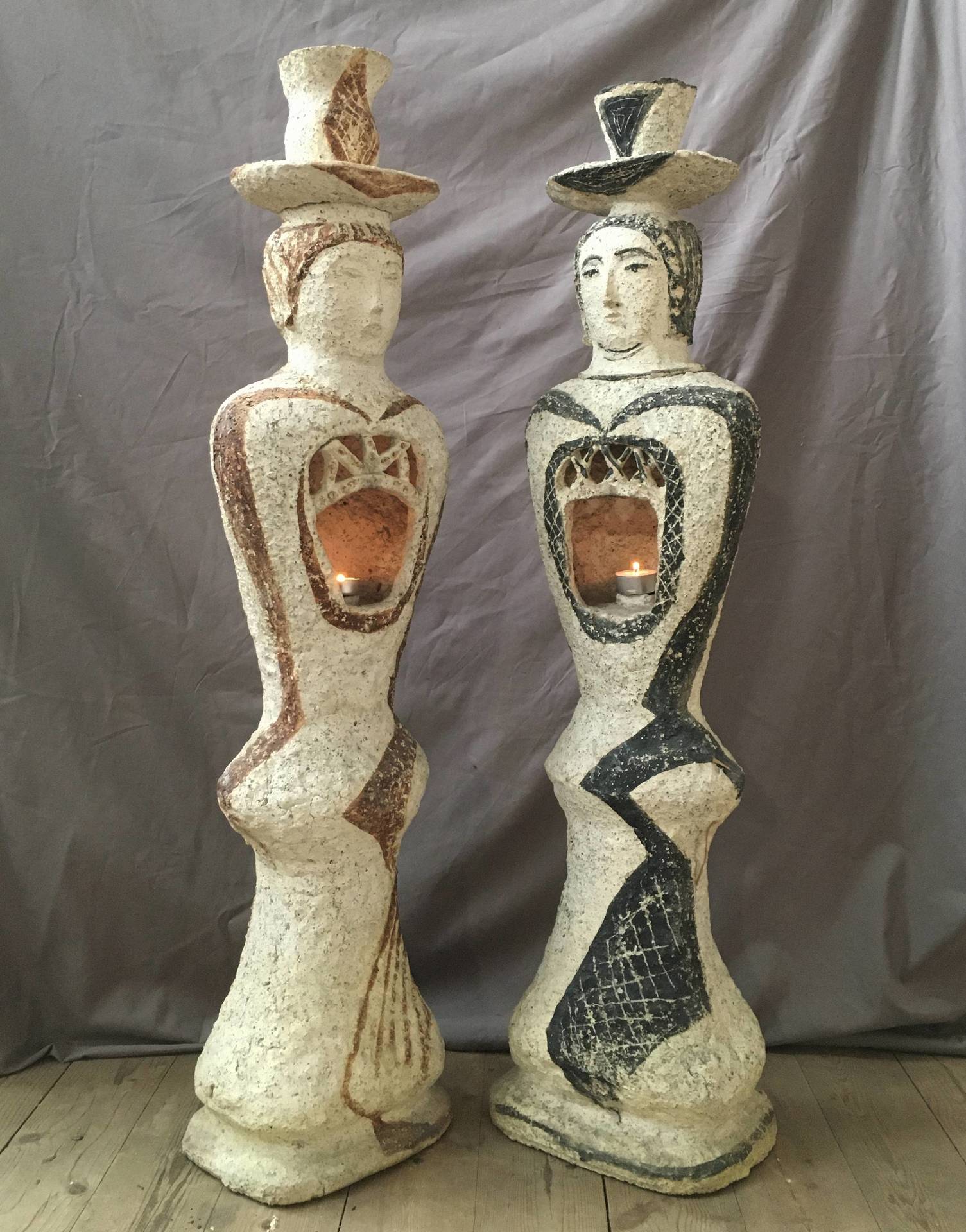 Фигуры с подставкой для свечи. В верхней части есть отверстие теплоотвода. Состояние хорошее: фигуры стояли в мастерской скульптора. Есть клеймо Автора.
