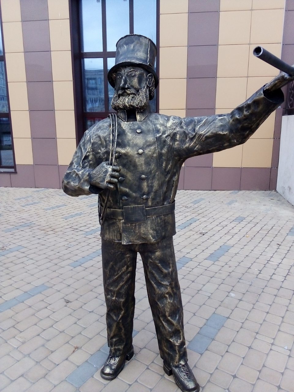 Скульптура выполнена из листового металла. Покрыта молотковой краской + патина золото.