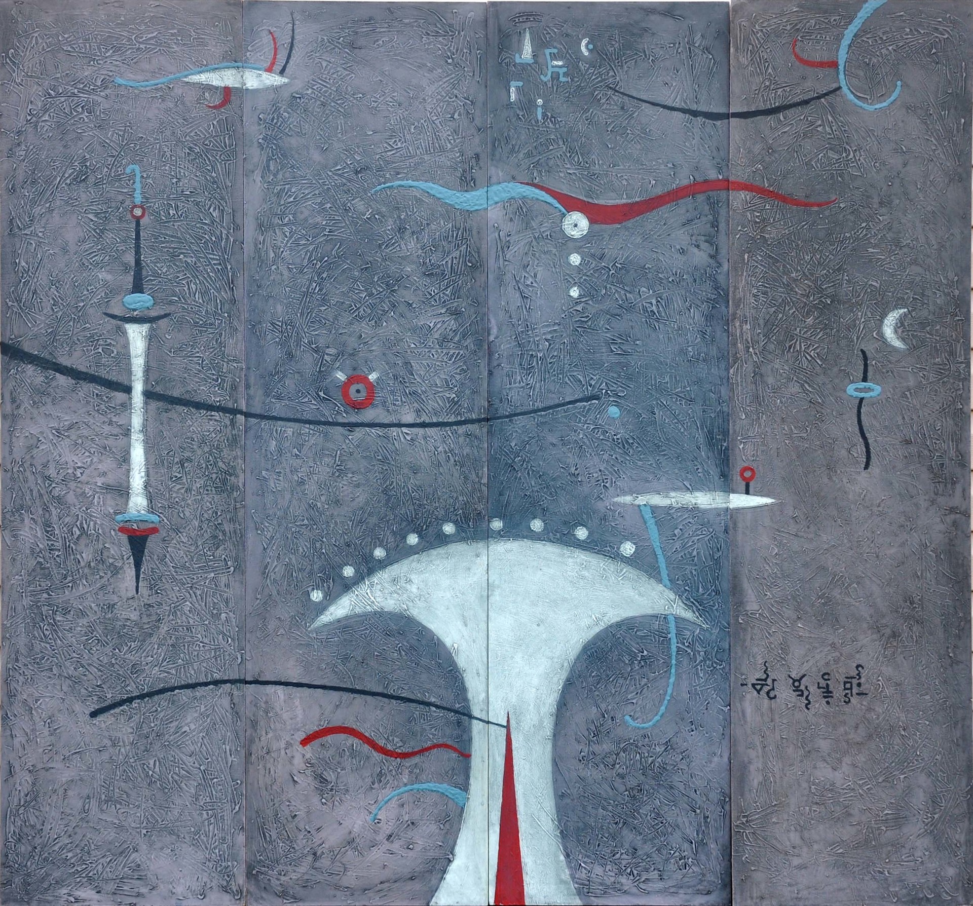 Работа исполнена акрилом по оргалиту (толщина оргалита - 6 мм). Работа состоит из четырёх модулей.