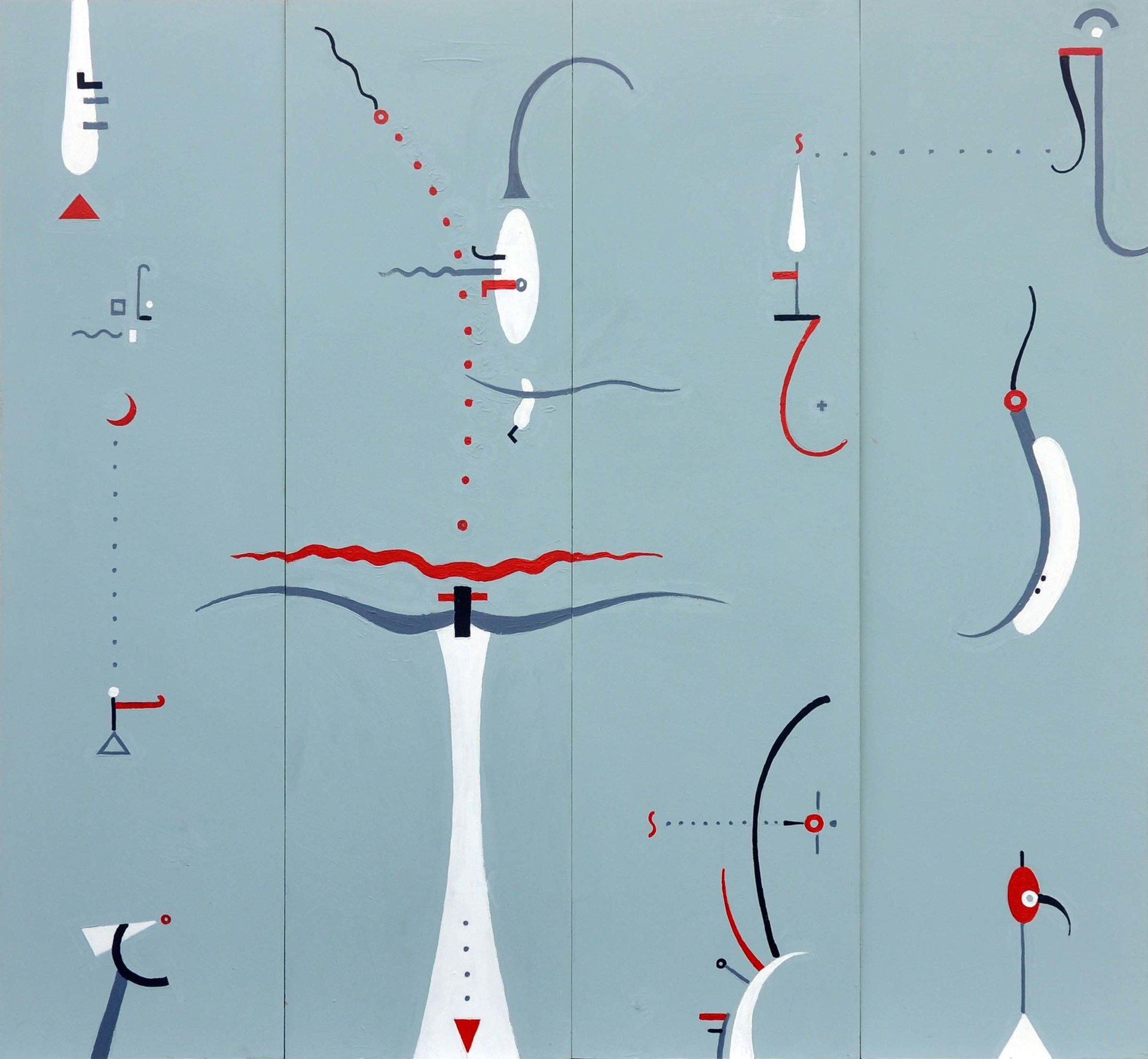 Работа исполнена акрилом по оргалиту (толщина оргалита - 6 мм). Работа состоит из четырёх модулей.