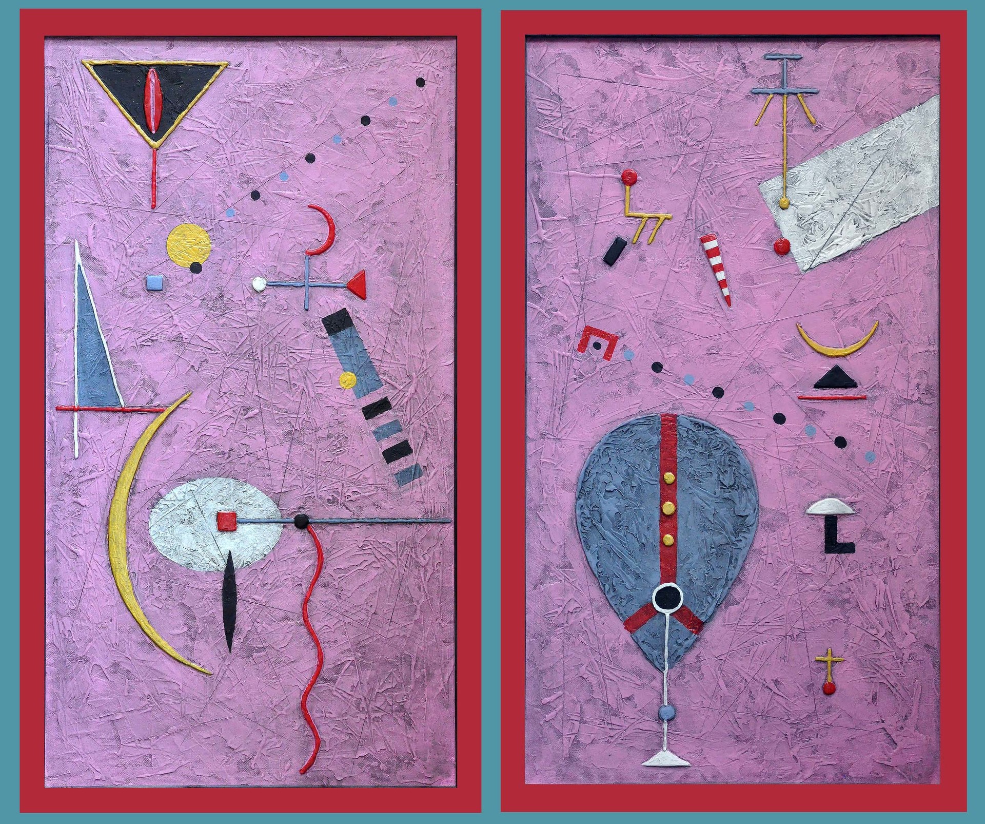 Работа исполнена акрилом по оргалиту. Состоит из двух работ - диптих. Имеет обрамление, которое входит в само произведение.