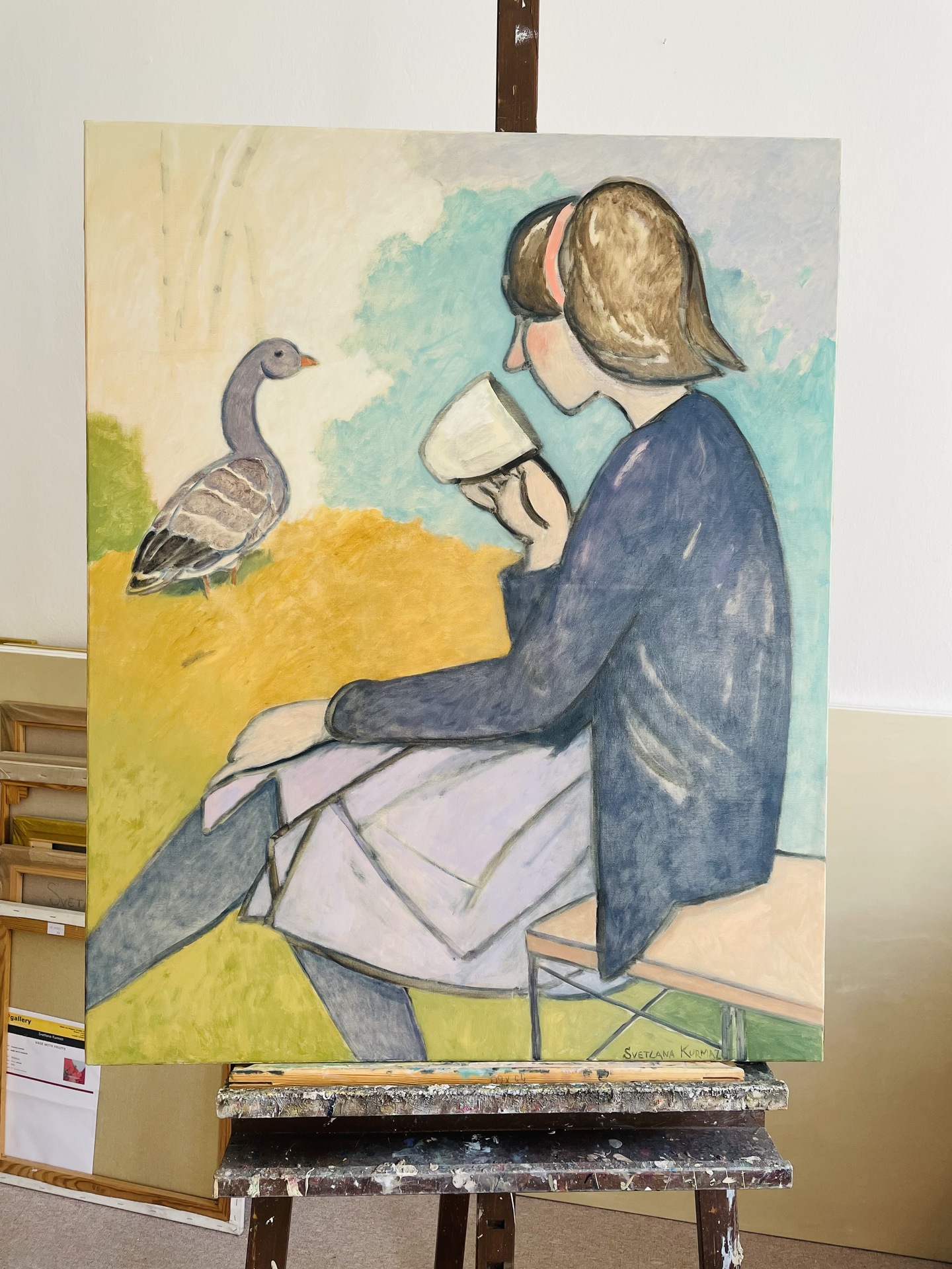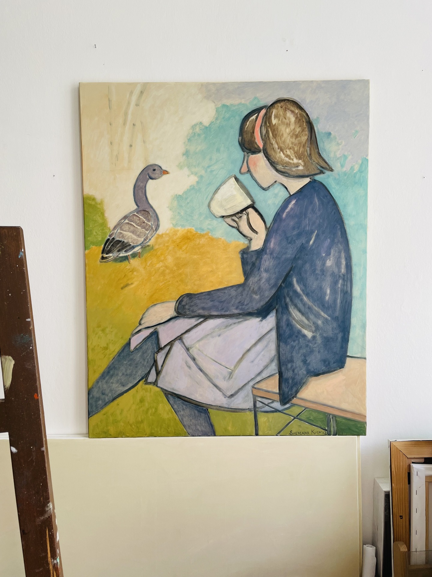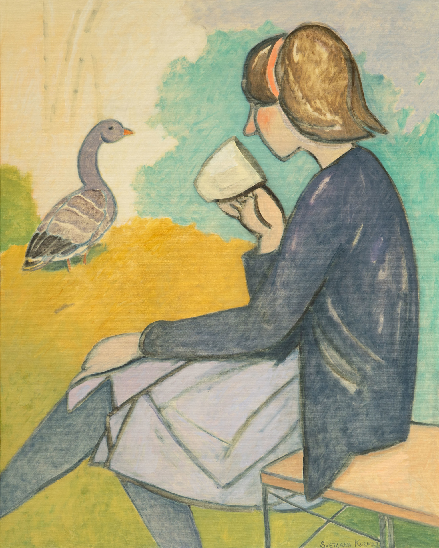 Девушка и серый гусь.