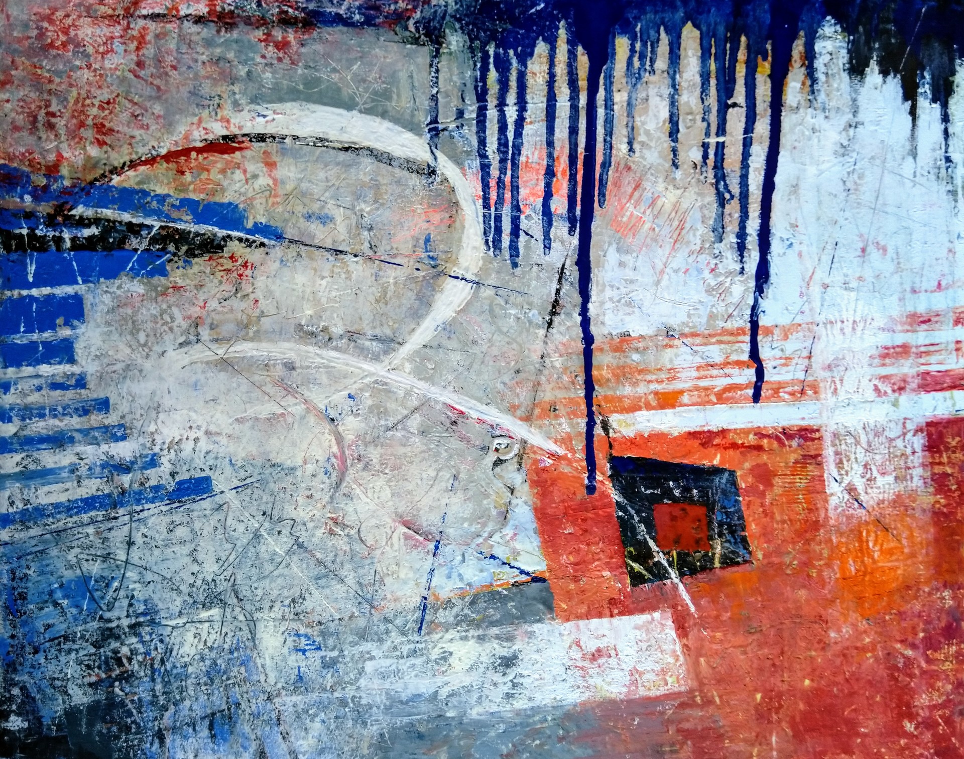 Работа выполнена на холсте в многослойной технике. Акрил, масло, cold wax medium. Не требует обрамления.