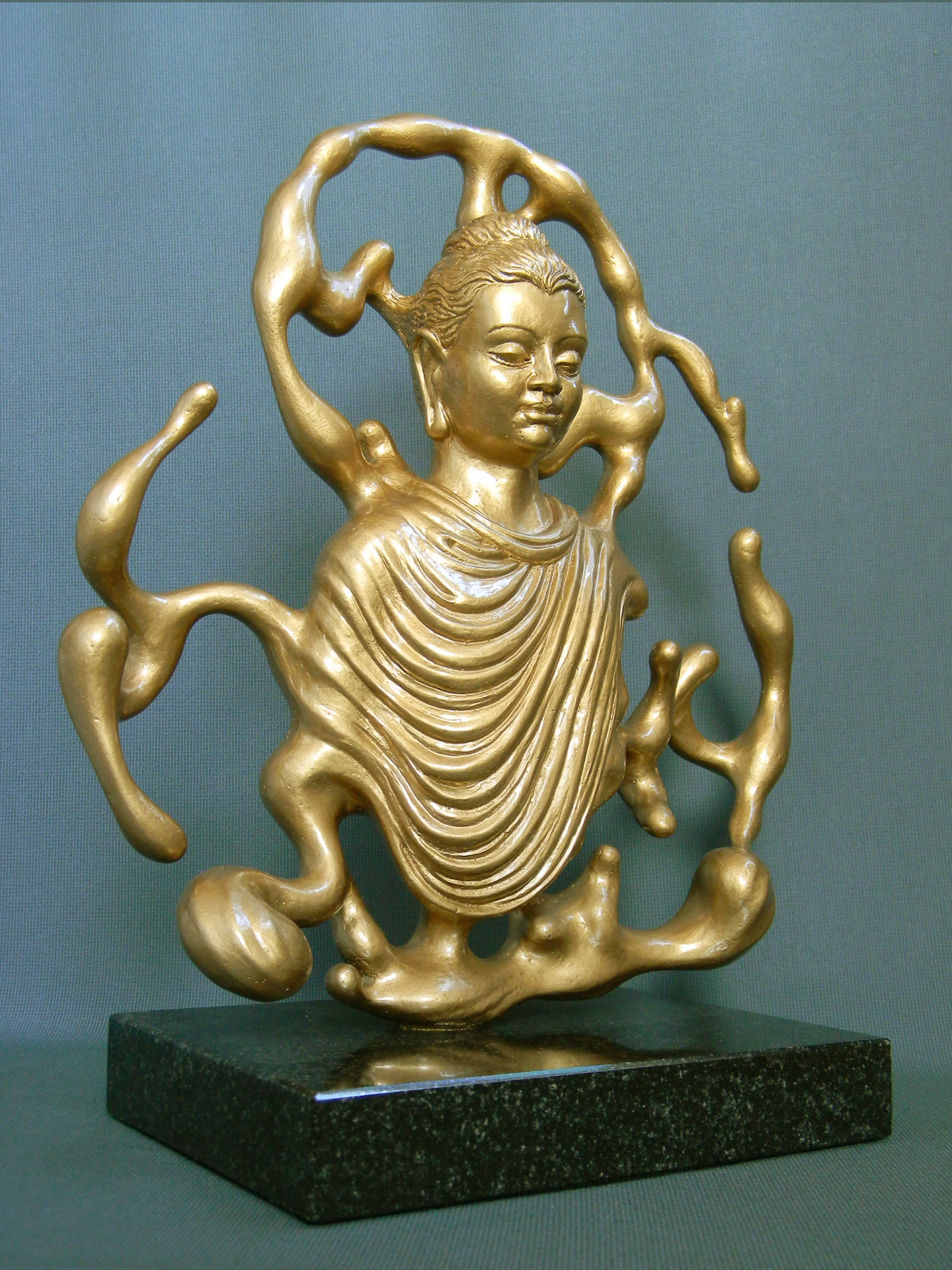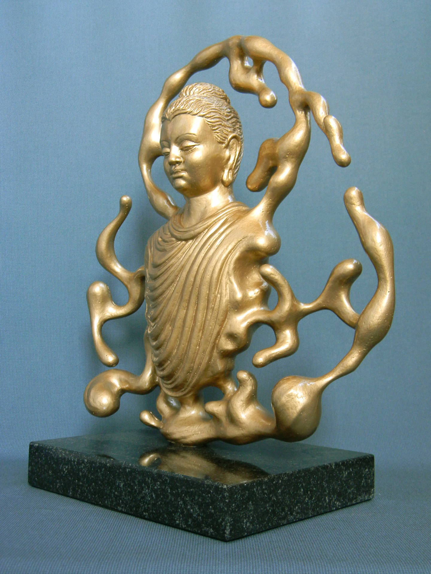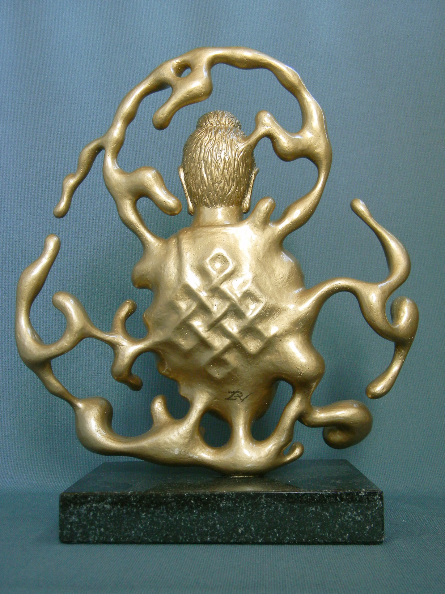 "Материализация Будды" "Форма есть пустота, пустота есть форма, форма и пустота не отделимы". Будда в своем абсолютно неразрушимом, а потому бесстрашном состоянии, вне пространственно-временных и каких бы то ни было ограничений - чистое состояние истинной реальности. Будда проявляет любые формы, чтобы принести благо всем существам. Ему присуща способность в нужное время в нужном месте сделать то, что необходимо, а также сочувственное, спонтанное и свободное от усилий поведение в соответствии с четырьмя видами просветленной активности: - умиротворяющей - вдохновляющей - обогащающей - защищающей. Материал: Литьевой пластик, тонировка под бронзу. Подиум: камень. Если материал - бронза. Стоимость скульптуры будет больше.