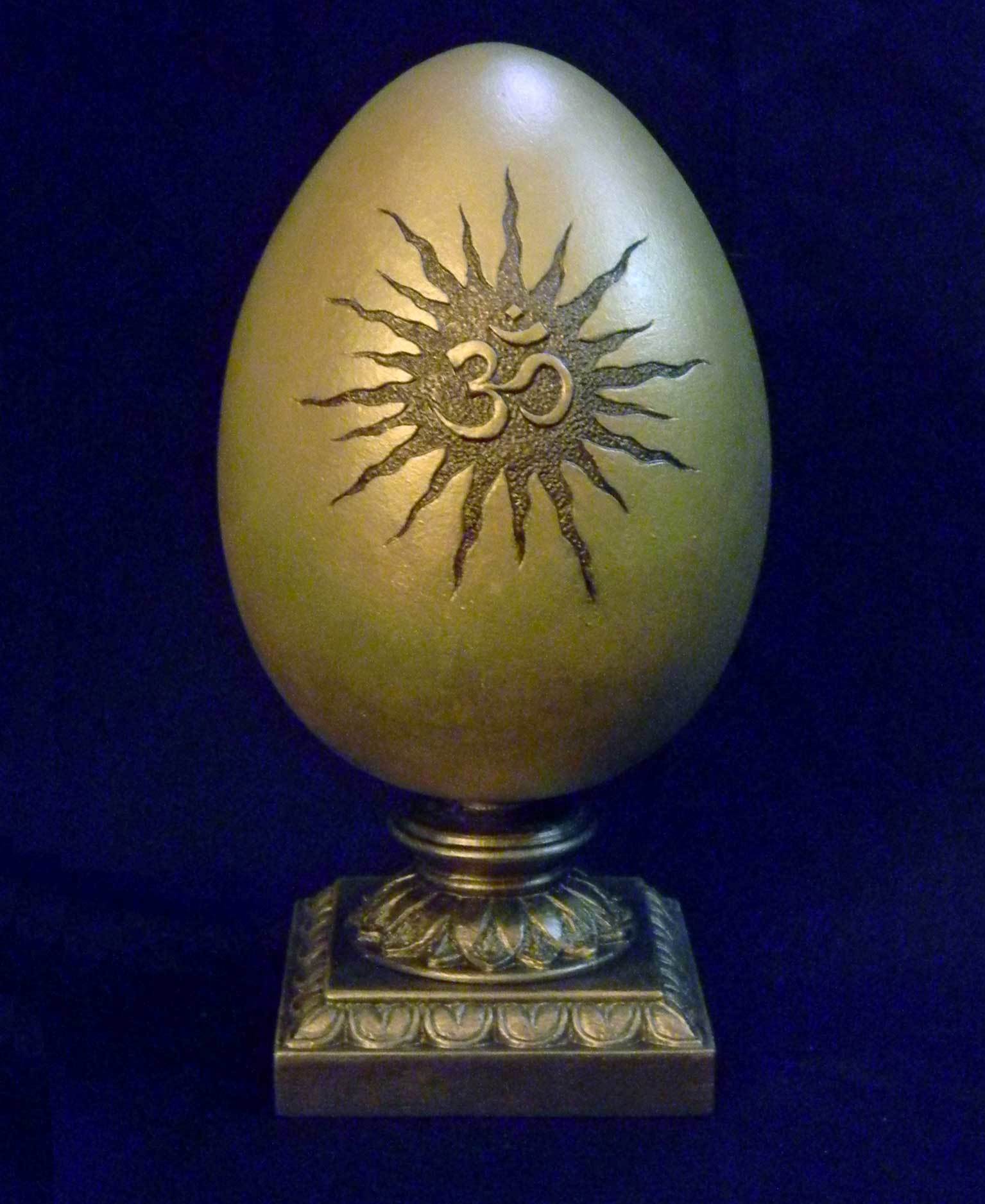 "Начало всех начал" "Яйцо мира Брахмы» Согласно легенде, Брахма родился в воде, в которую Вишну вложил свое семя, которое позже превратилось в Золотое яйцо, своего рода космический зародыш. Из этого золотого яйца был рождён Брахма. Мысленно он расколол яйцо пополам. Из одной половины он создал небо, Божественную сферу, из другой — землю и все живое. Скульптура для дома, салона, галереи, рабочего места. Материал: литьевой пластик, тонировка под золото или бронзу. Если материал «бронза», стоимость скульптуры будет больше.