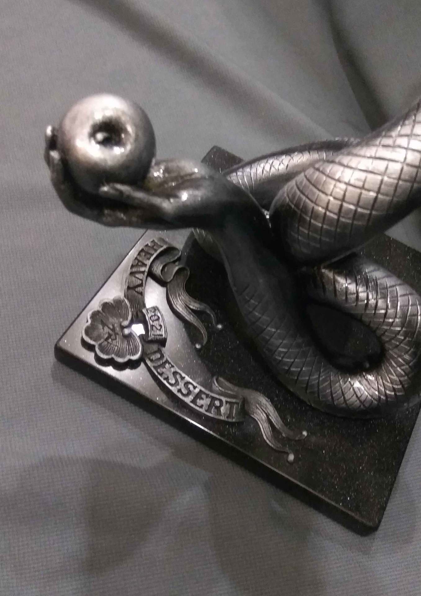 "Тяжелый десерт" Скульптура. "Тяжелый десерт" "Бог знает, что в тот день, когда ты их съешь, твои глаза откроются, и ты будешь подобен Богу, который знает добро и зло". Авторская работа. Скульптура посвящена ключевому библейскому событию. "Запретный плод". Материал : литьевой эко-пластик, тонировка под чернёное серебро, Подиум: искусcтвенный камень «Galaxy».