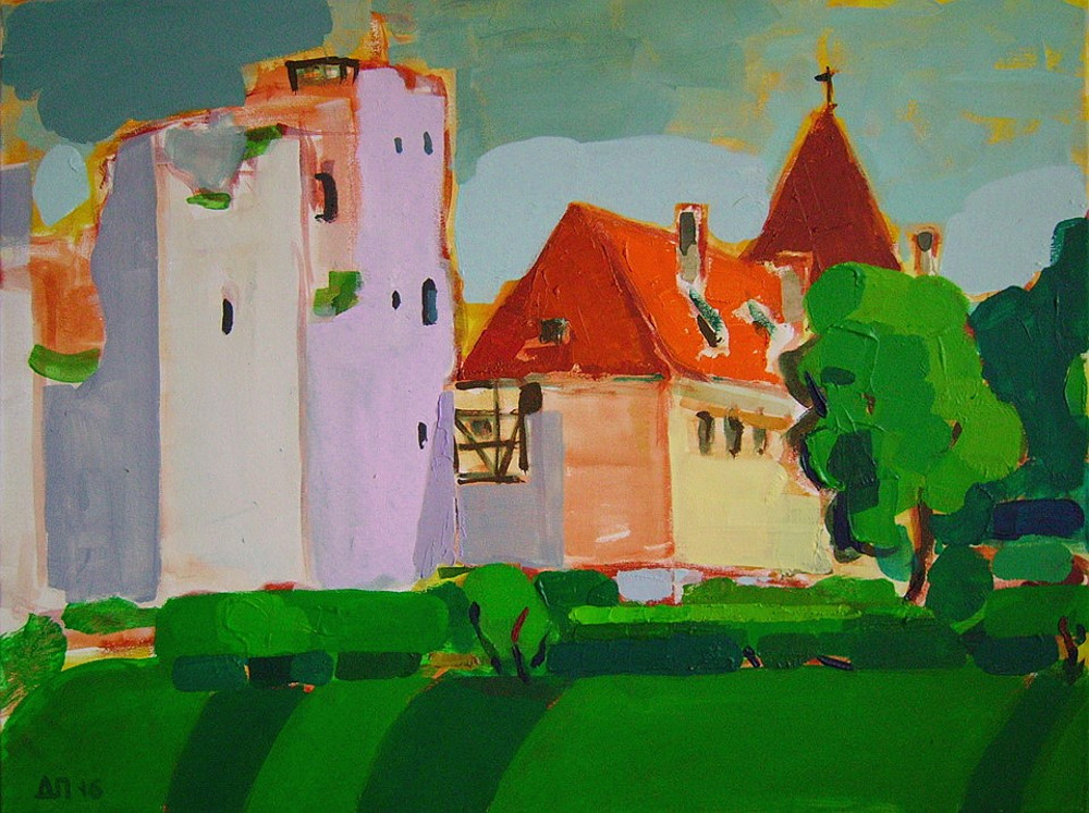 На картине изображен Бауский замок (Bauskas pils). Написана во время пленера "Bauskas vasara 2016", организованного мэрией города Бауска (Латвия).