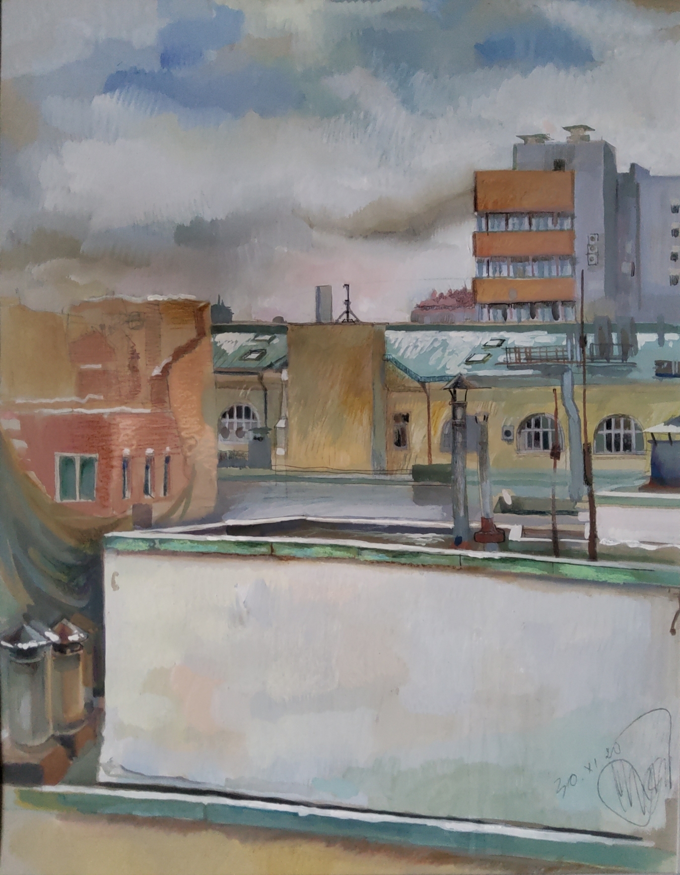 Городской пейзаж.Вид из окна на крыши Новослободской улицы