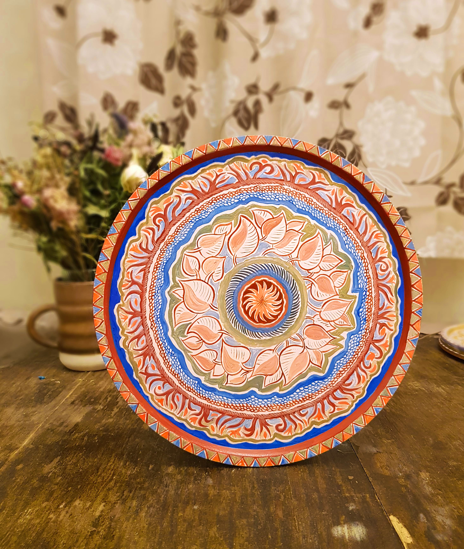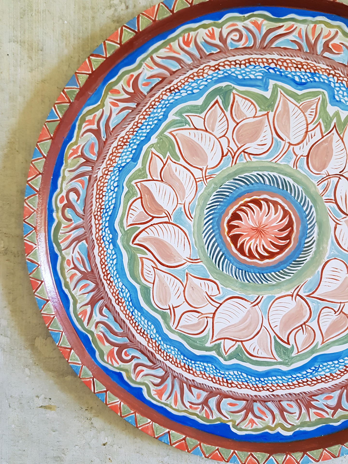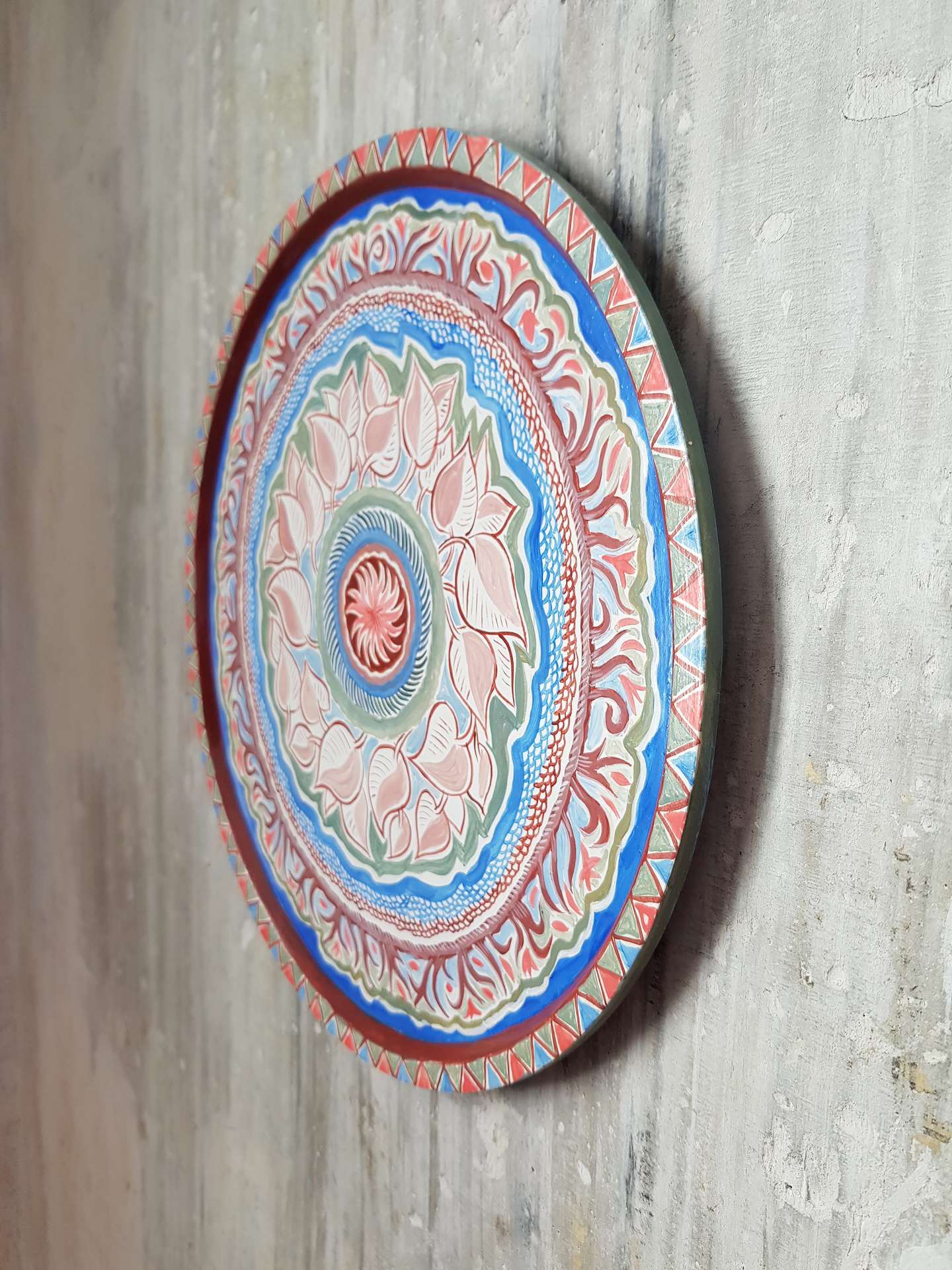 Декоративное панно с креплением на стену (как поднос не используется). Размер - 30 см в диаметре. Вещь существует в единственном экземпляре (работы не повторяются, рисую без эскизов - импровизирую). Можно аккуратно протирать влажной тряпочкой. Горячее ставить не рекомендуется, так как роспись выполнена акрилом.