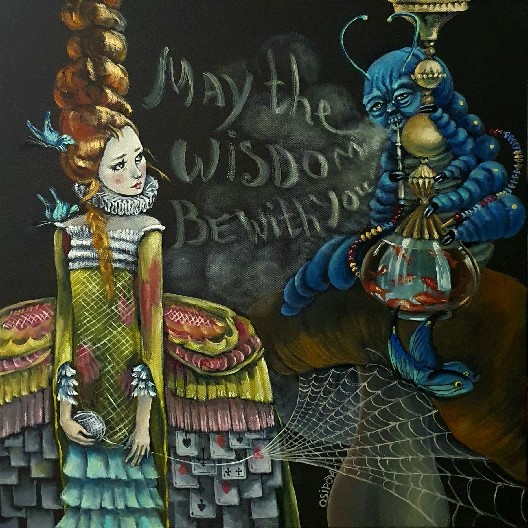 Картина из серии "Алиса в стране чудес". Работа выставлялась на персональной выставке, в Сочинском Художественном музее имени Д. Д. Жилинского.