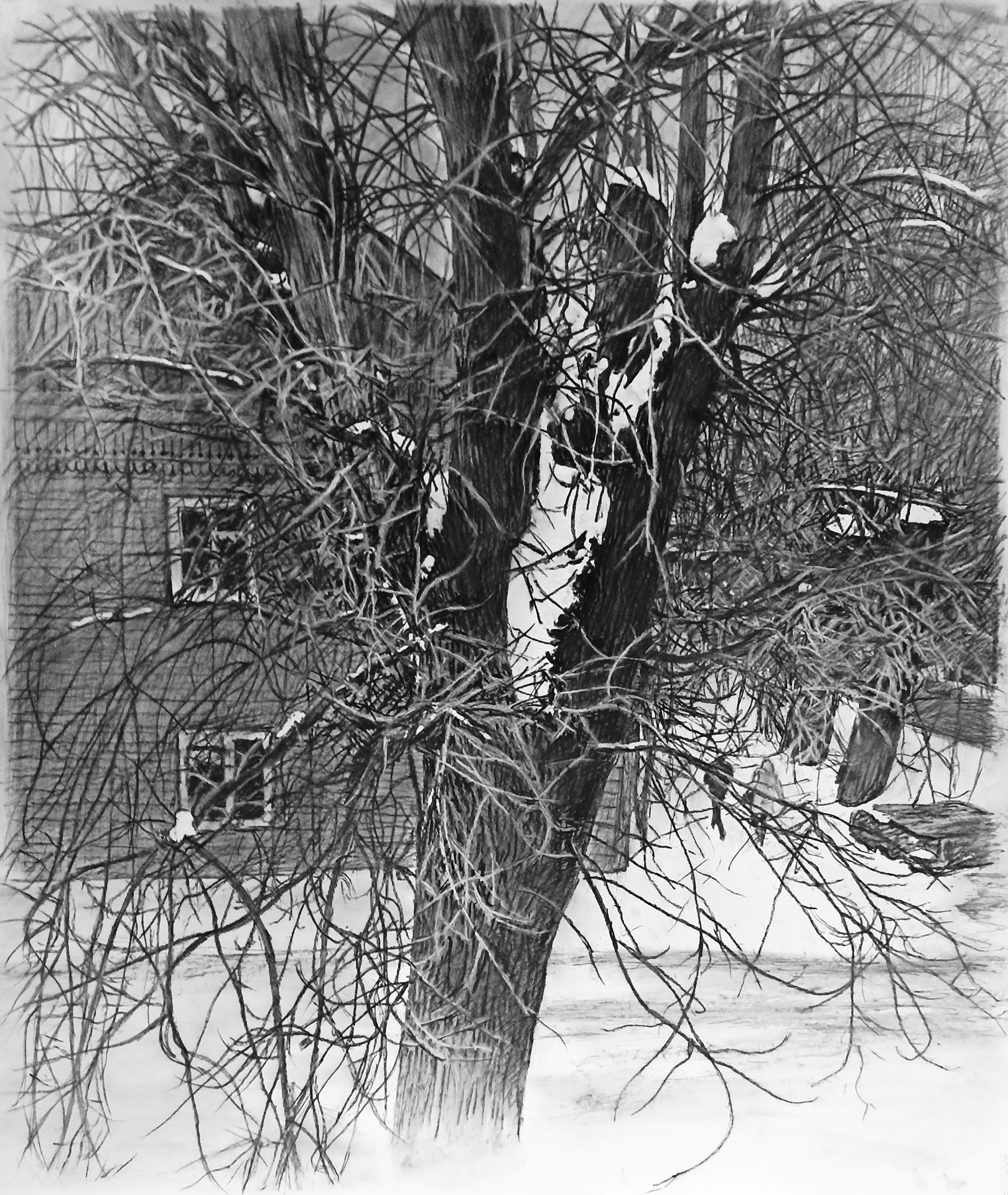 город, дворы, реализм, зима, пейзаж, графика