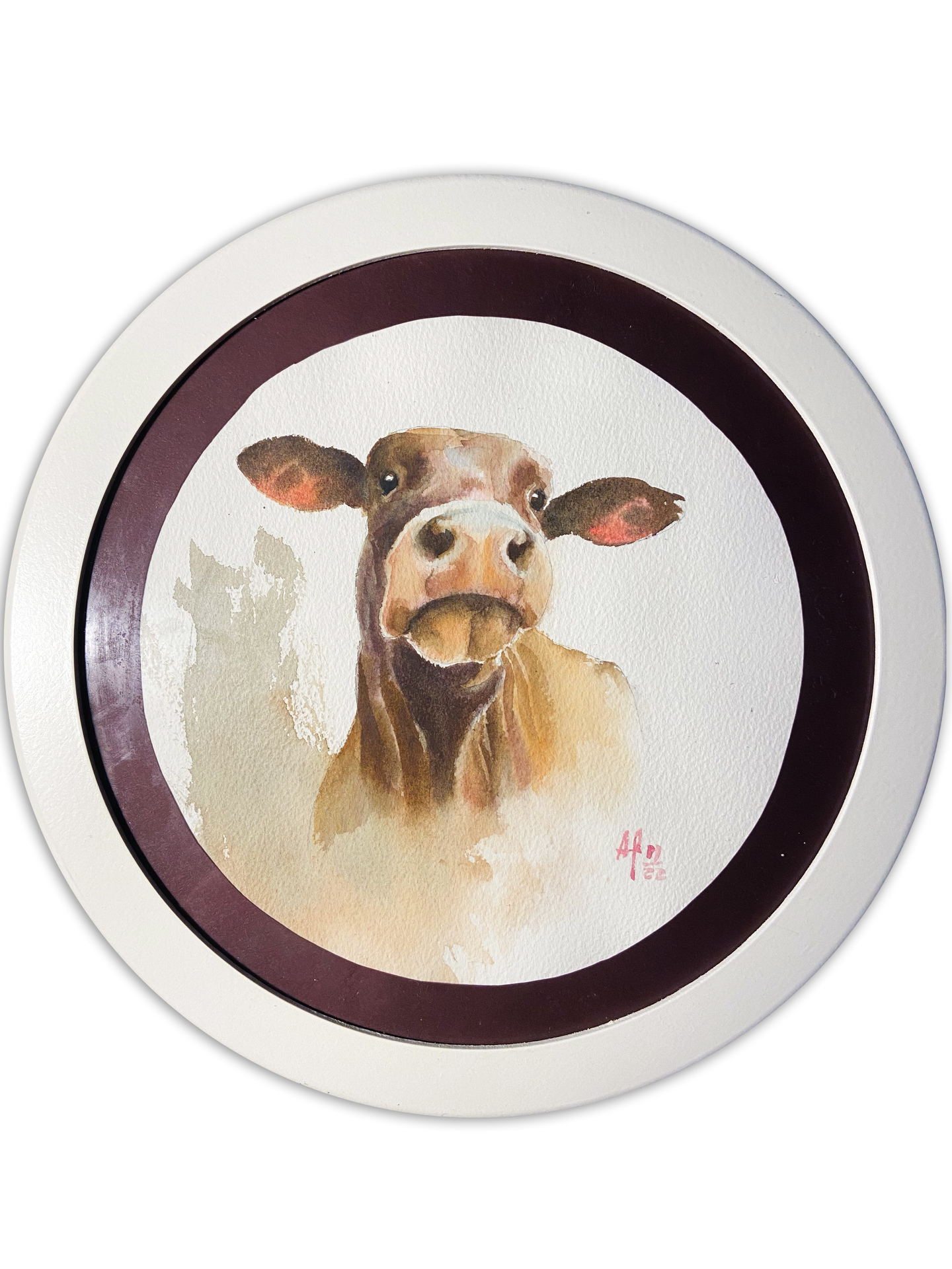 Работа оформлена в круглую белую раму.