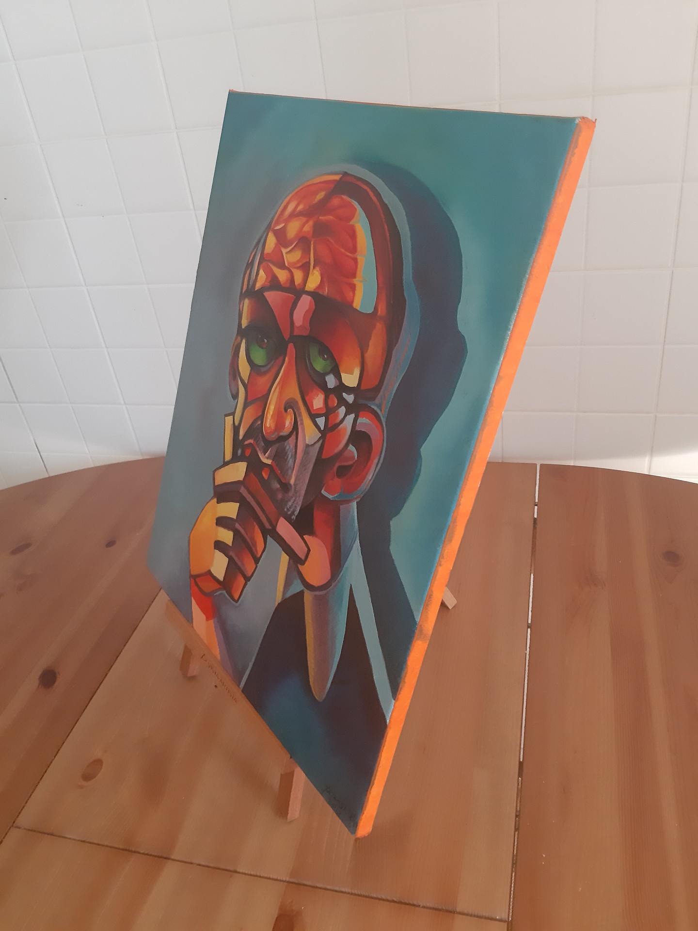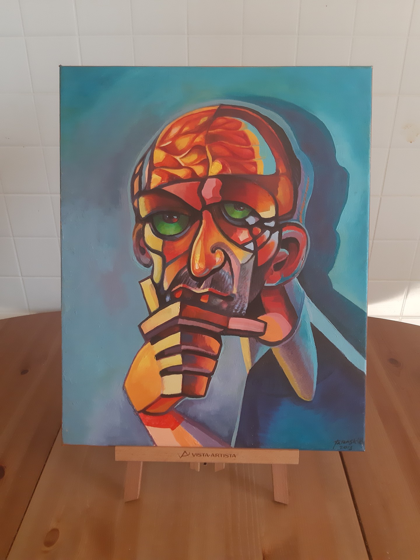 Портрет одного вдумчивого журналиста (Александр Гордон) маслом на холсте 50х40см, на подрамнике (толщина 2см). Тематика картина взята с программы 2002 года "Пунктирный человек", психология смысла. Доставка не входит в стоимость.