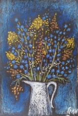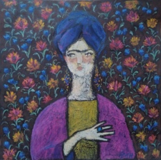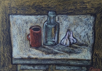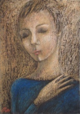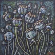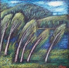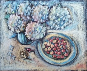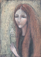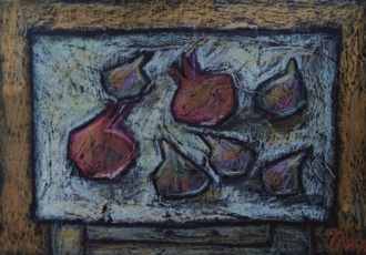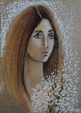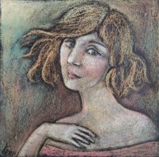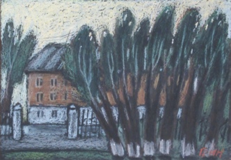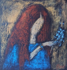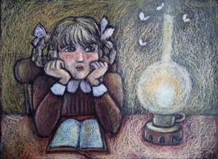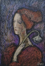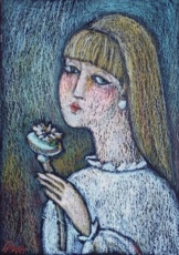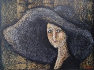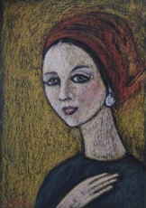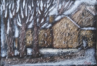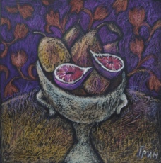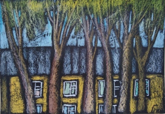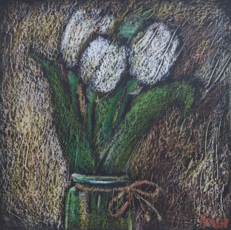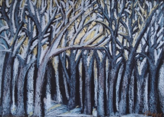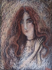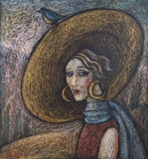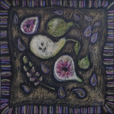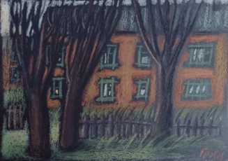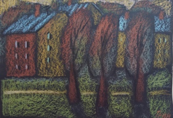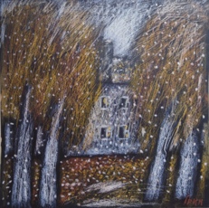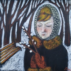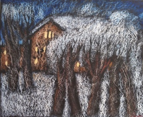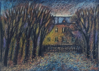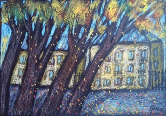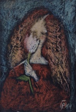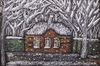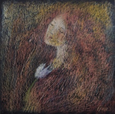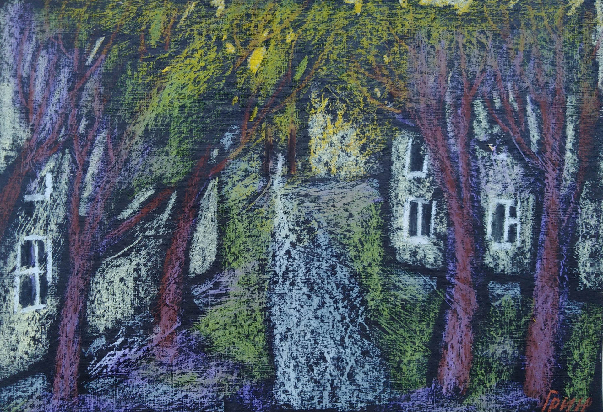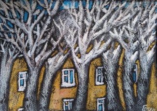 Работа выполнена в технике масляной пастели на грунтованной бумаге.