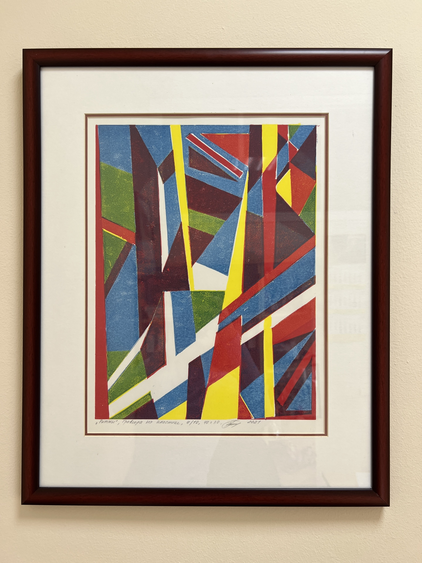 Трехцветная гравюра на пластике, размер изображения 40х30, размер листа 59,4х42