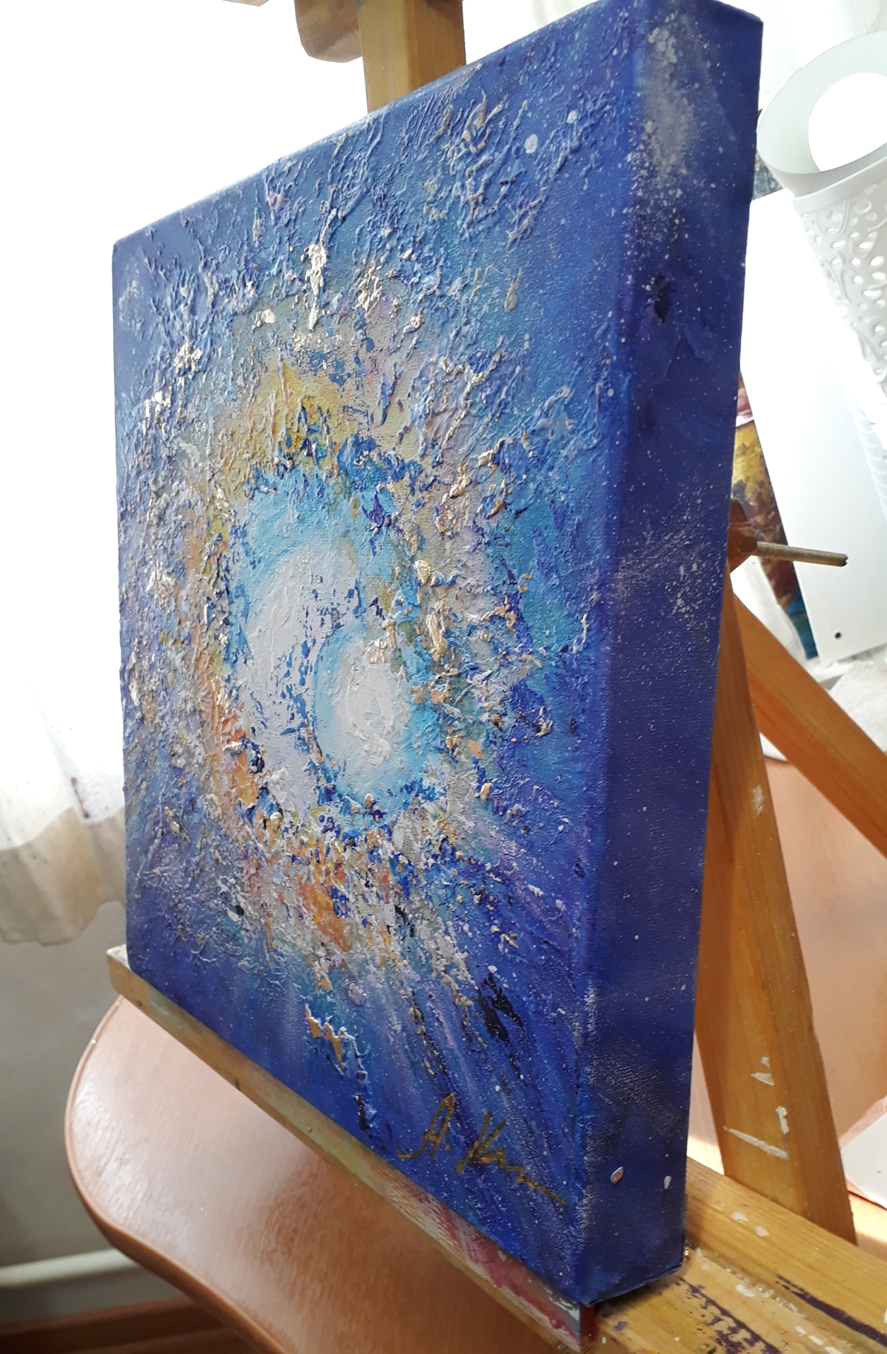Каждый раз, создавая абстракцию, неосознанно отдаешь холсту те мысли, которые наполняют тебя в данный момент времени. Подобно бесконечному космическому пространству наши чувства и эмоции формируют вокруг нас мир в котором мы живем: - Если тебе внушают чувство страха, ненависть, вину… тобой манипулируют. Будь мудрее –не ведись. Работа не нуждается в раме, создана в единственном экземпляре.