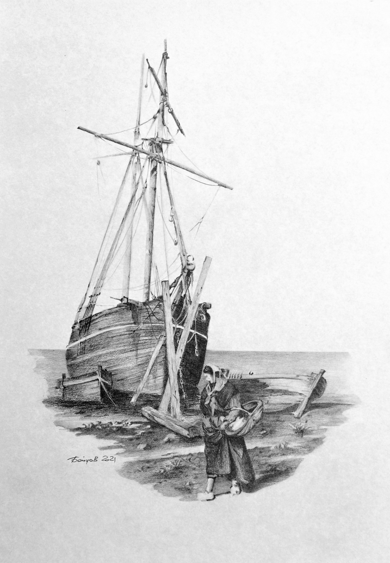 2021 © А. Boytsov 42 x 30 cm. You can order a different size. The work is signed by the author. Graphite pencil on high-quality white paper "GoZNAK" (density 200 gr.). The drawing is processed with a fixative for graphic works. No suspension system, no frame design. *** I can send this picture in a sandwich pack - in a dense waterproof bag sandwiched between two sheets of Styrofoam. Any questions can be discussed if you email me.