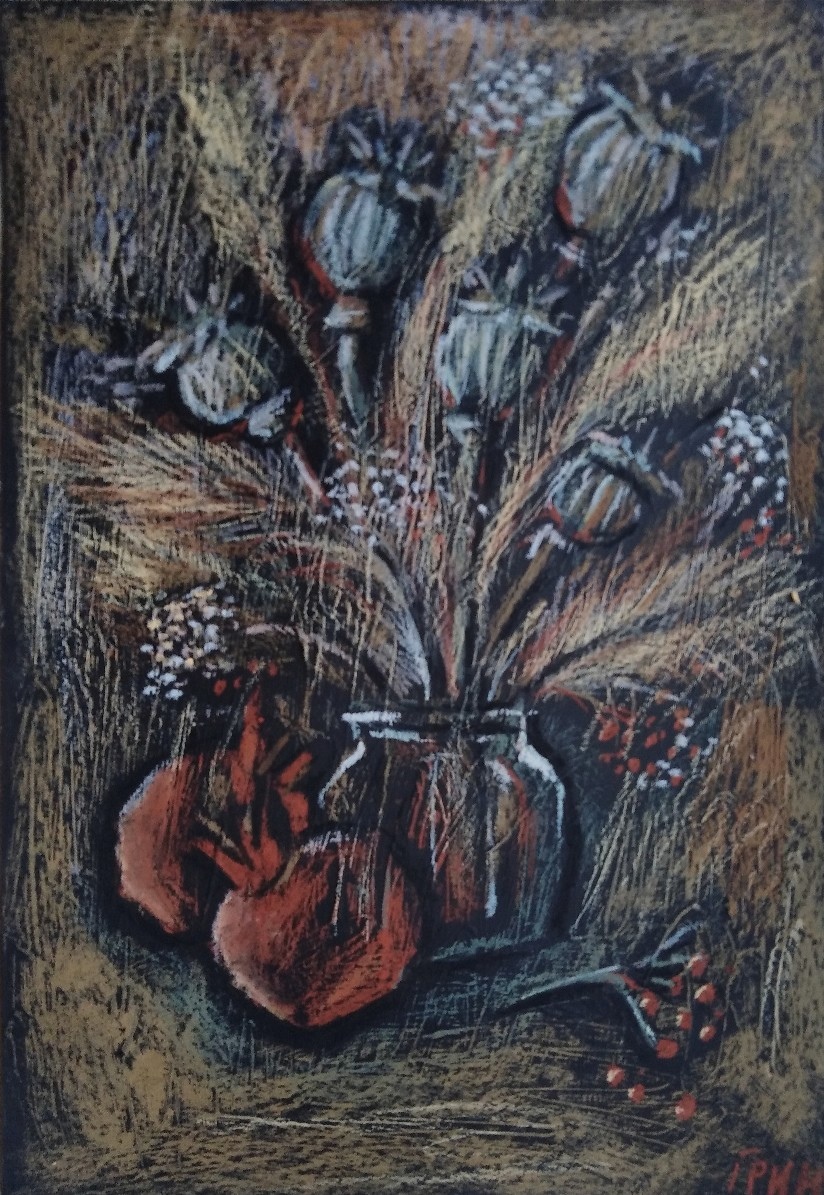 Работа выполнена в технике масляной пастели на грунтованной бумаге.
