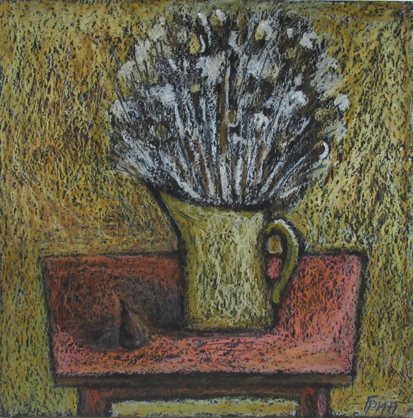 Работа выполнена в технике масляной пастели на грунтованной бумаге.