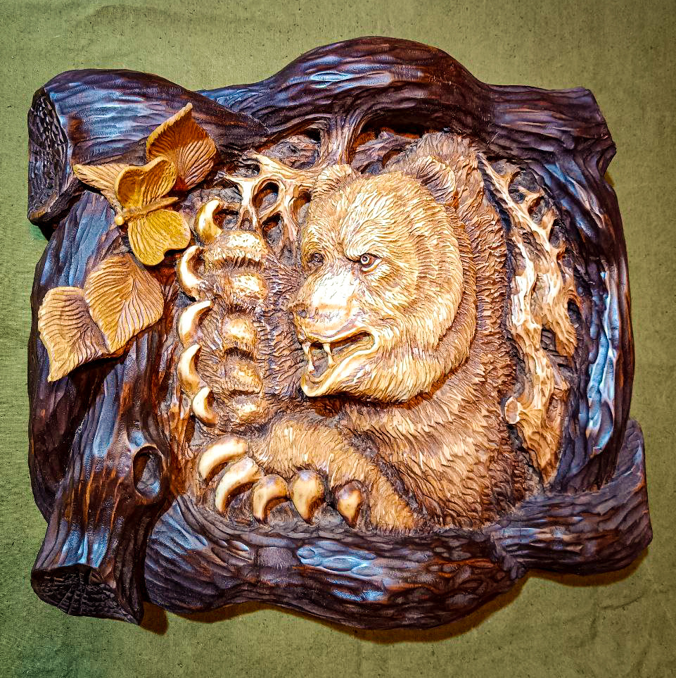Настенное панно. Примитивизм. Авторская работа. Резьба по дереву. Липа. Тонировка, вощение.