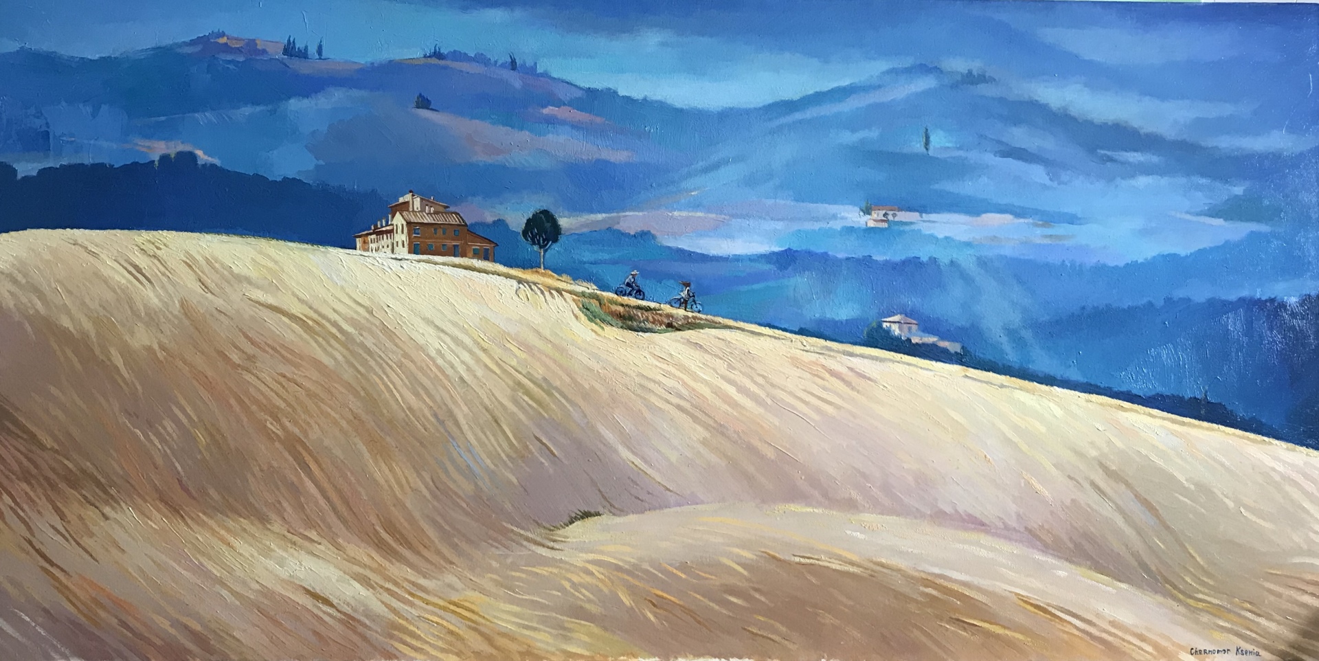 Изысканная итальянская картина Bramasole или желать солнца, создаст уют и тёплое солнечное настроение. Картина написана на Тосканских холмах долины Валь д’Орча, поистине Божественное место, недаром Андрей Тарковский, выбрал для съёмок фильма «Ностальгия», именно эту местность. Размер 100*50, холст, итальянские краски. Оформление в багет на месте.
