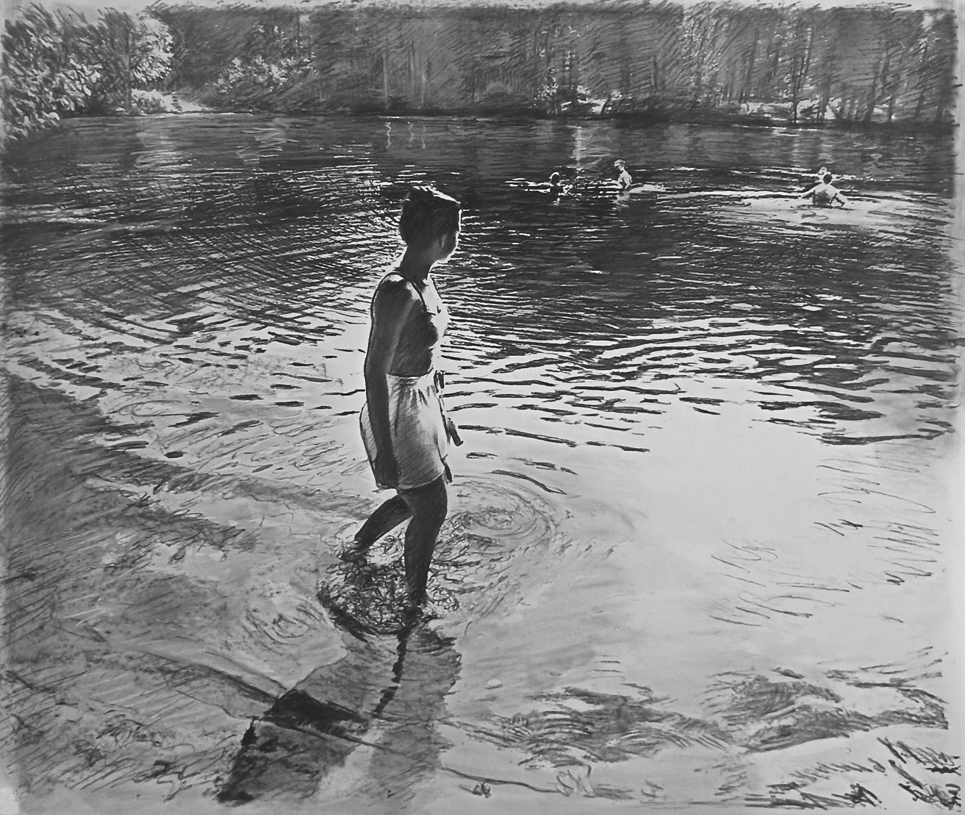 пейзаж, лето, природа, реализм, дача, графика