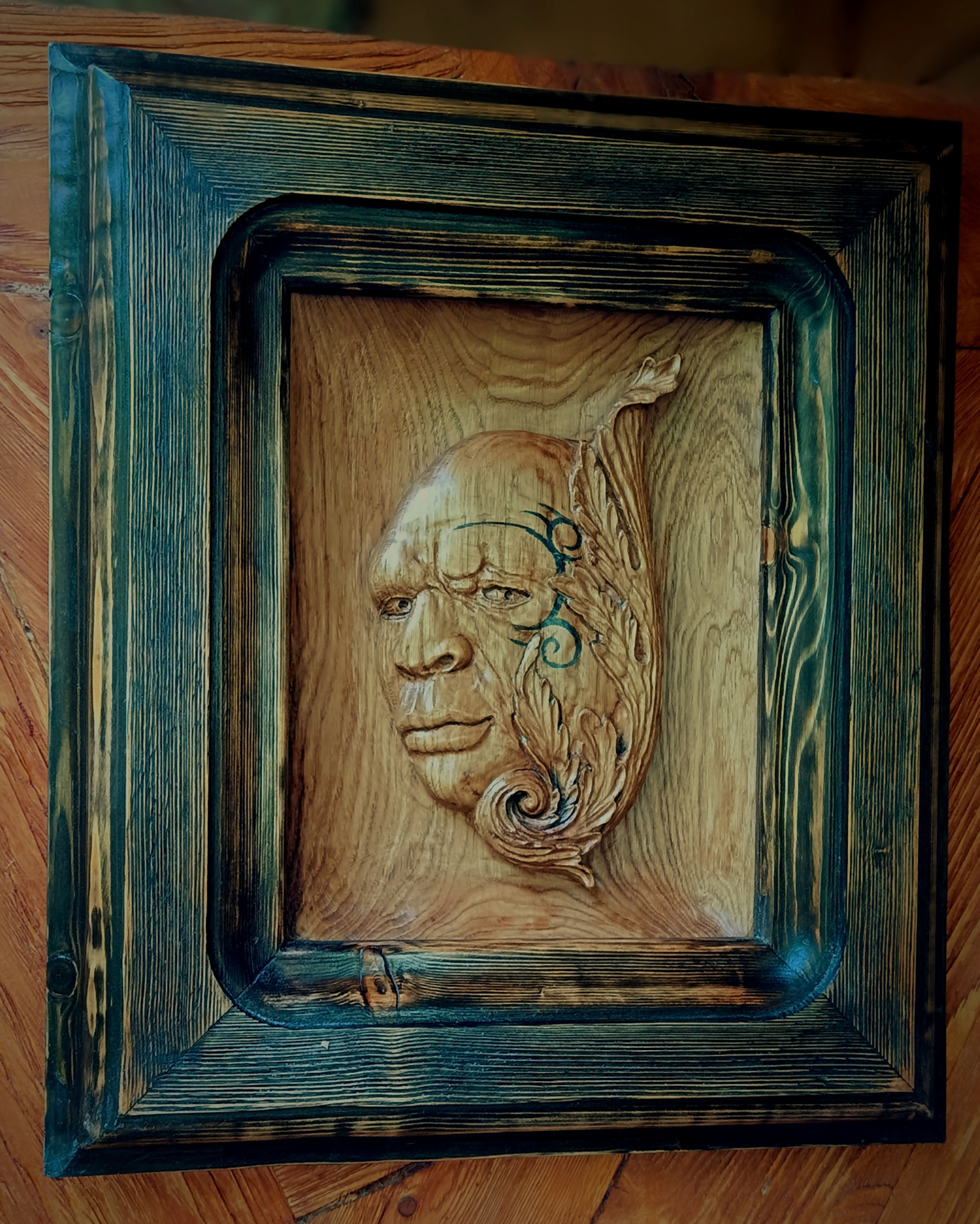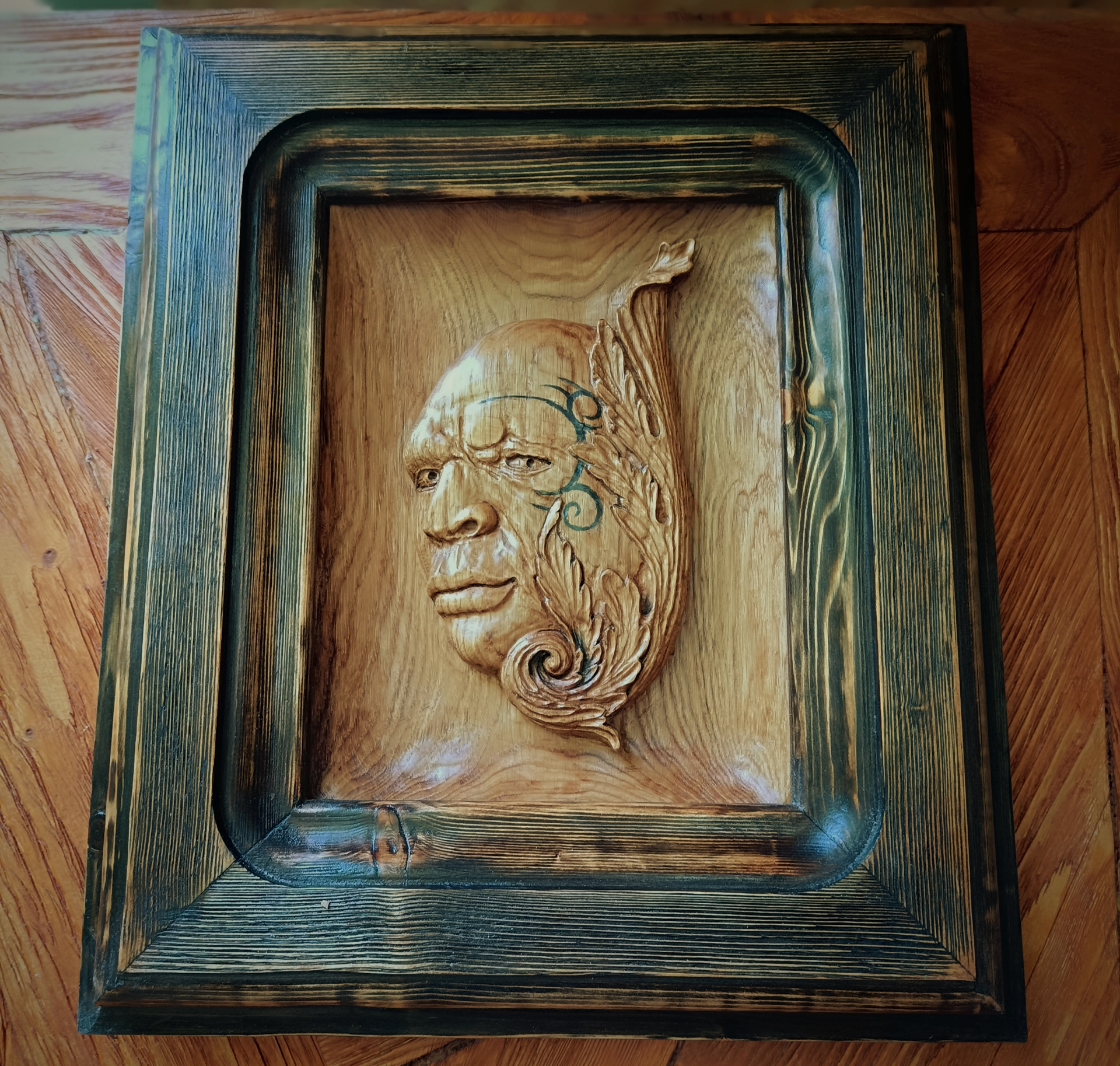 Панно, авторская работа, дуб, рама лиственница, масло, воск.