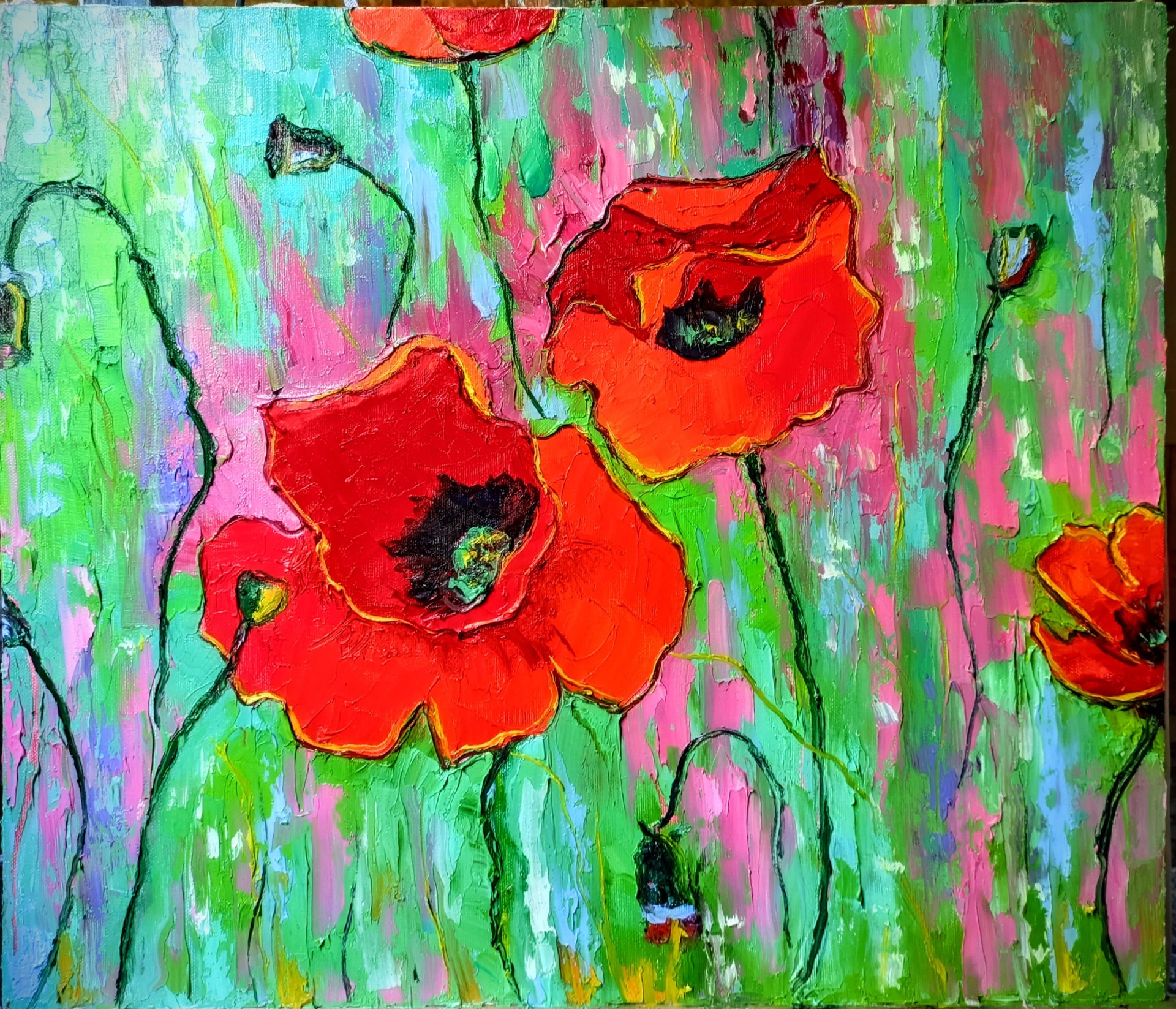 Картина написана пальцами и мастихином