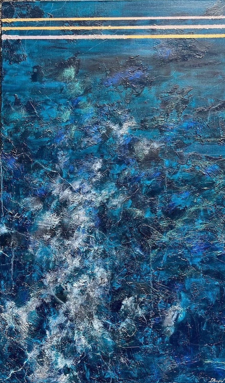 Участник персональной выставки, КЦ «Вдохновение» весна 2023г. Москва. Усастник выставки «Московская неделя интерьера и дизайна 2023». В ясный солнечный день, любуюсь морем с высоты птичьего полета. Оно видится насыщено – ярким с интенсивно бегущими, пенящимися волнами, в лазурно - голубых оттенках, освещенными лучами солнца так, что глазам становится больно смотреть. Я погружаюсь с головой под воду, открываю глаза, вижу, как вода окрасилась еще в более яркие, насыщенные краски и периодично поднимающиеся вверх пузырьки, образующиеся в результате всплеска сверкающих волн. Завороженно вглядываясь в картину морских глубин, подаренных нам природой, ощущаю тепло и нежность и не устаю удивляться его непостижимости и таинственности.