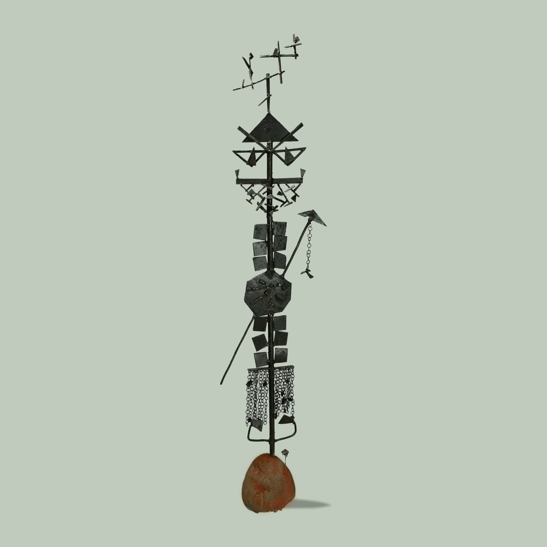 Скульптура представляет собой фигуру стражника стоящего на страже как материальных, духовных ценностей и традиций.