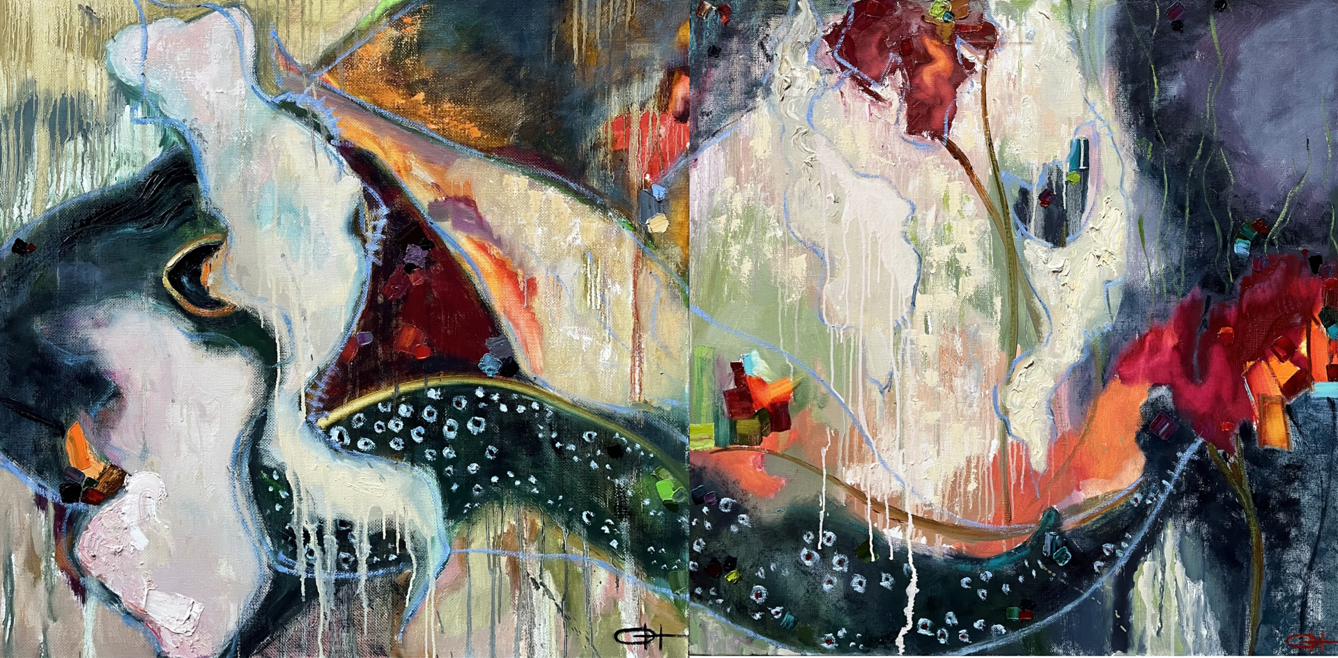 Серия "Небылицы". Диптих. Интерьерная картина написана на стыке жанров символизма и абстракционизма. 2 холста 80х80 см каждый.