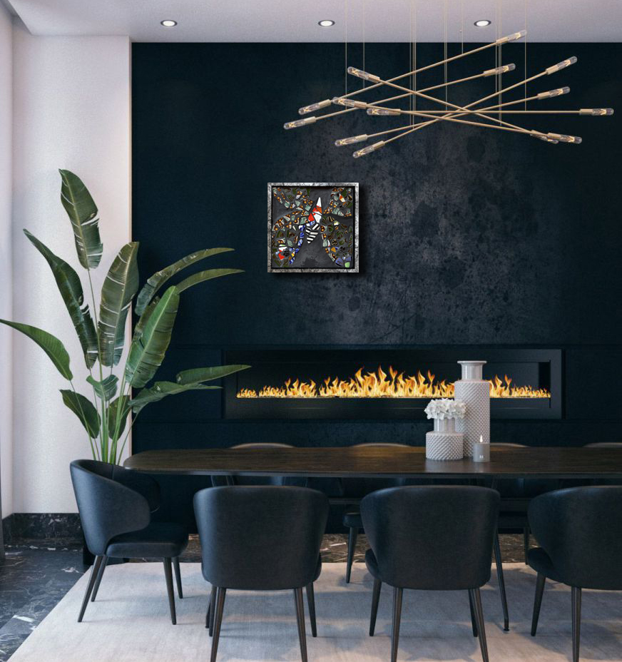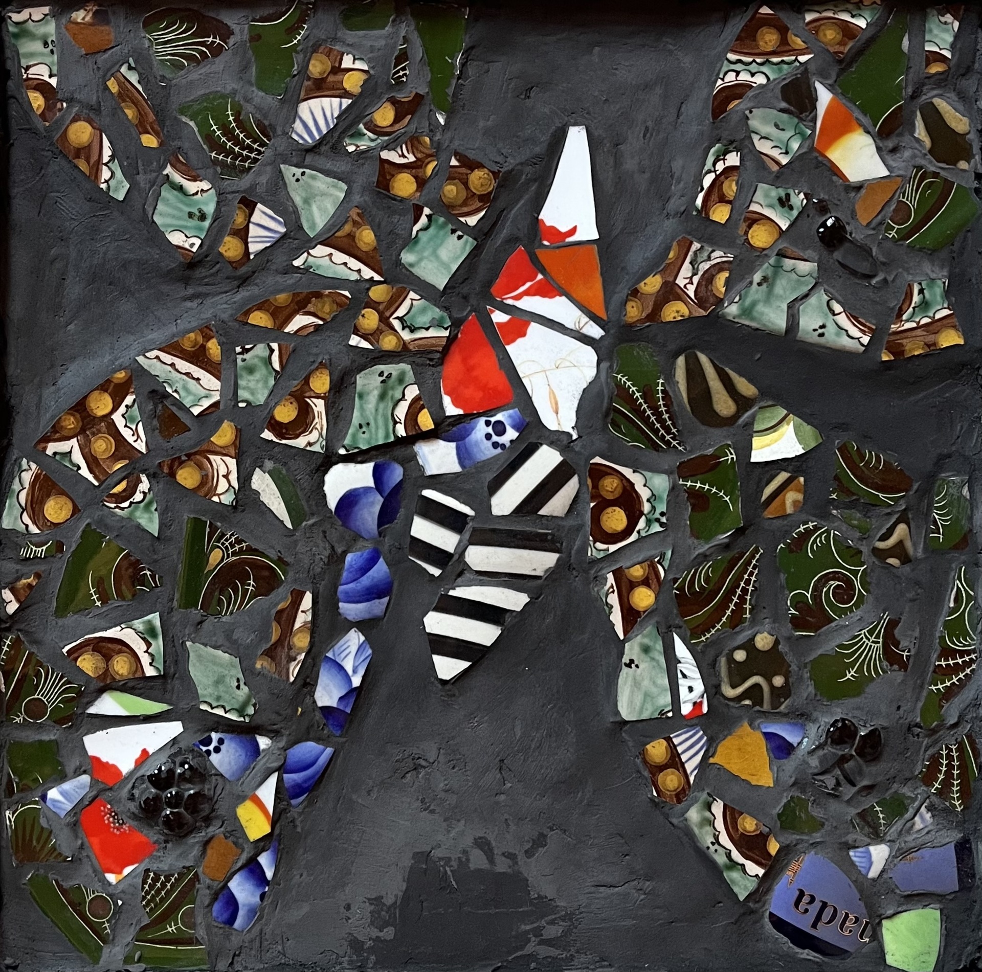 Серия "Небылицы". Декоративное настенное панно, оформлено в раму. Работа сделана в технике "ломаной" мозаики ("тренкадис") из кусочков разбитой посуды.