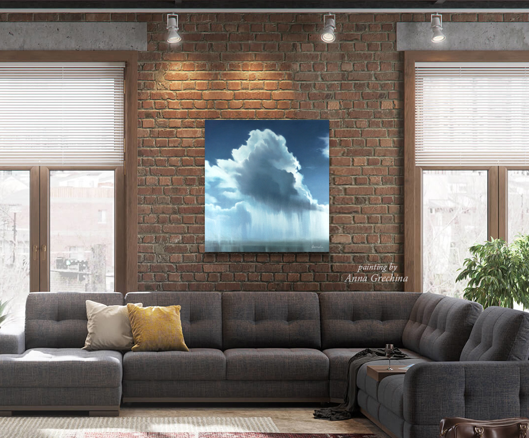 Картина "Тучка" ВЫПОЛНЯЕТСЯ НА ЗАКАЗ! Выполнение заказа от 2 месяцев. Точное повторение не возможно. Цена указана за размер 100 x 90 сm. Для вас я могу нарисовать эту работу по вашим размерам. ______________________________________- --- Авторская живопись. Используются высококачественные художественные масляные краски, испанский холст, сборный подрамник, покрывной лак Winsor&Newton. ПОКУПКА. --- ПОКУПКА КАРТИНЫ В МАСТЕРСКОЙ: Все работы вы можете посмотреть и приобрести у меня в мастерской в г. Москва, район Отрадное, по предварительной договоренности. --- ПРИМЕРКА КАРТИНЫ ON-LINE – в подарок! * (по желанию, возможно изготовление эскиза –привязки картины в фотографию интерьера покупателя.) --- ОПЛАТА: 100% суммы перед отправкой картины покупателю. --- ДОСТАВКА: для пересылки в другой город мои работы надёжно упаковываются по технологии европейских и американских художественных интернет-магазинов и могут быть отправлены в коробе или тубусе. Почтовые и транспортные компании согласовываются с покупателем индивидуально. Стоимость почтовых и транспортных перевозок, а так же перевозку картин для примерки в интерьере, оплачивает покупатель. --- ПРИМЕРКА В ИНТЕРЬЕРЕ: Для жителей Москвы есть возможность примерки картин в интерьере. --- КАРТИНЫ НА ЗАКАЗ: по желанию заказчика, я могу сделать повтор своей работы в другом размере, если это нужно для интерьера. Срок изготовления заказов от 2х месяцев, точное повторение невозможно. При выполнении заказа берется аванс. Стоимость заказа и сумма аванса обговаривается индивидуально. --- Для отправки картины в другое государство возможно изготовление сертификата на вывоз от Министерства культуры Российской Федерации.