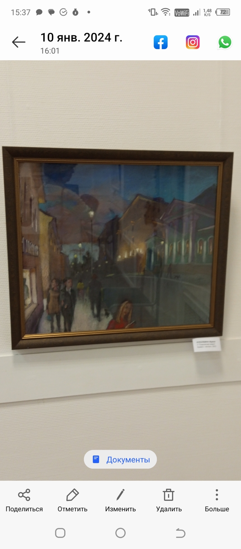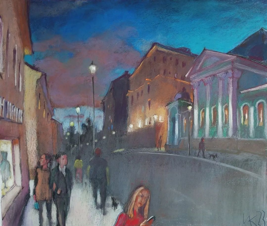 Работа экспонировались на выставке ,,Московская пастель" в январе 2024г в залах МСХ на Кузнецком мосту. Работа оформлена в раму со стеклом.