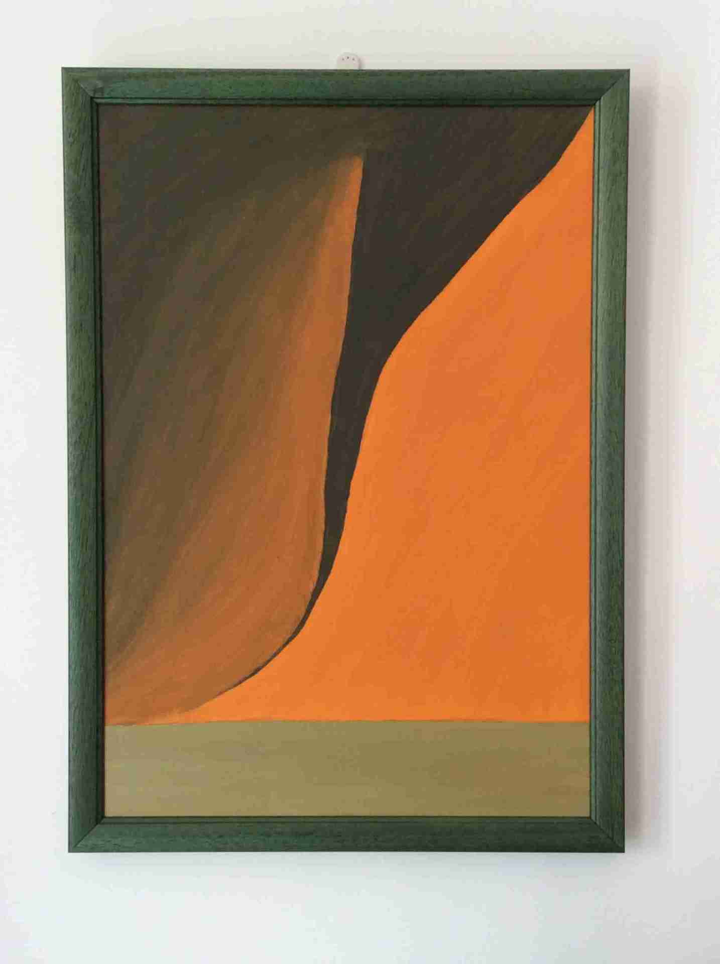 Stored on the French Riviera. The dimensions with frame are 42 x 59.5 cm. Done in June 2016 in Cannes on the French Riviera. This picture is fairly figurative, not typical for me. It translates my impressions from watching footage of a tornado in the orange desert of Orange Country, Namibia, South Africa. The power of elements is balanced by a subtle composition with a minimalistic treatment of the color scheme. Автор - Искан. "Торнадо в Оранжевой пустыне", холст на картоне, масло, 2016 год. Размеры забавные французские, в сантиметрах это 55,5 на 38,2 см. Вот так картина висела на стене. Читал, вольно переводя на русский, восьмилетнему внуку иллюстрированный детский альбом по географии с текстами на французском. На юго-западе Африки есть пустыня Намиб, или Оранжевая пустыня - самая старая на Земле, она со времён его любимых динозавров - под сто миллионов лет, и в ней самая высокая песчаная дюна в мире. Меня впечатлил смерч, который безумные восточные ветры закручивают по самой сухой пустыне Африки, вздымая ползучие пески, и это видно аж из космоса невооруженным глазом. Я бы и не написал пустыню, но вдохновился тем, что на берегах оранжевой пустыни водятся пингвины из моего детства, героически перенося жару. Редкий для меня случай: я сделал не геометрическую абстракцию, а фигуратив, и вдвойне редкий, поскольку использовал холст на картоне. Рамку заказывал в багетной мастерской в Каннах, которая уже закрылась, там старый багетчик недорого делал, у него был интересный выбор багета, а недорого потому, что мастерская его была хоть и рядом с мэрией Канн, но практически на продуктовом рынке типа базар. У него не было кассовой машины ККМ, не было даже типографских квитанций, он от руки писал квиток каракулями на листочке в голубую клеточку из блокнота советского образца, конечно, французского производства - антиквариат! Какие налоги он платил, остаётся только догадываться. Открывал он мастерскую истинно по-средиземноморски: в урочные часы, но когда вздумается, а мобильный телефон у него был тоже антикварный и использовался больше как прибор времени, чем связи, потому что его часы показывали то настоящее, то прошедшее, то будущее время, а временами перфект и даже плюсквамперфект. Сроки выполнения заказа у него были "понятие растяжимое", я забрал мой заказ с третьего захода. Однако в этом и была прелесть старых добрых Канн. Шоб я так жил!