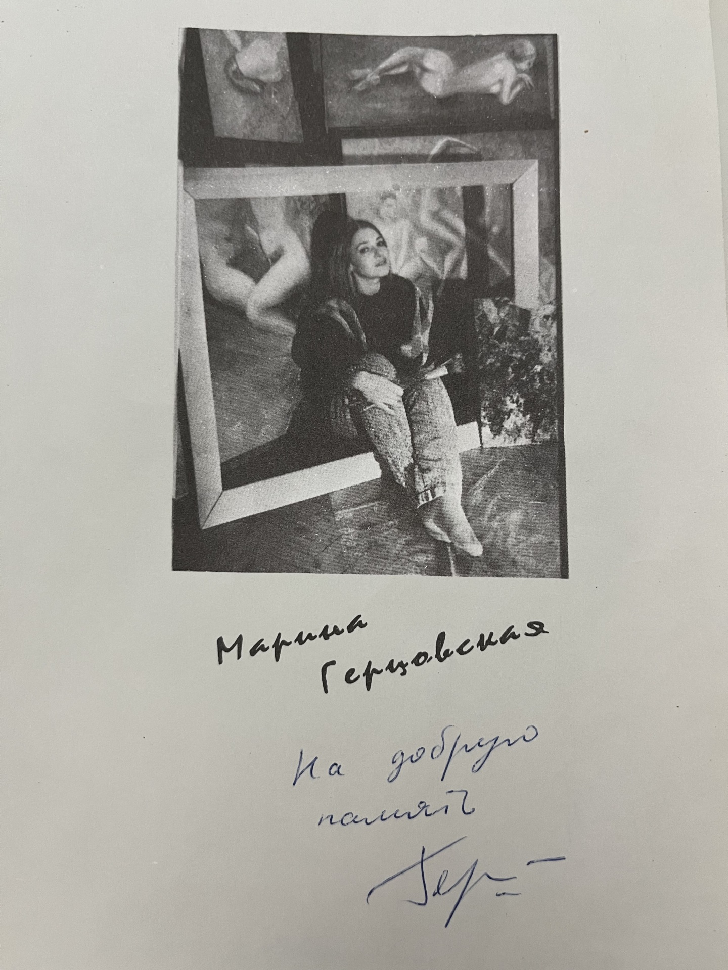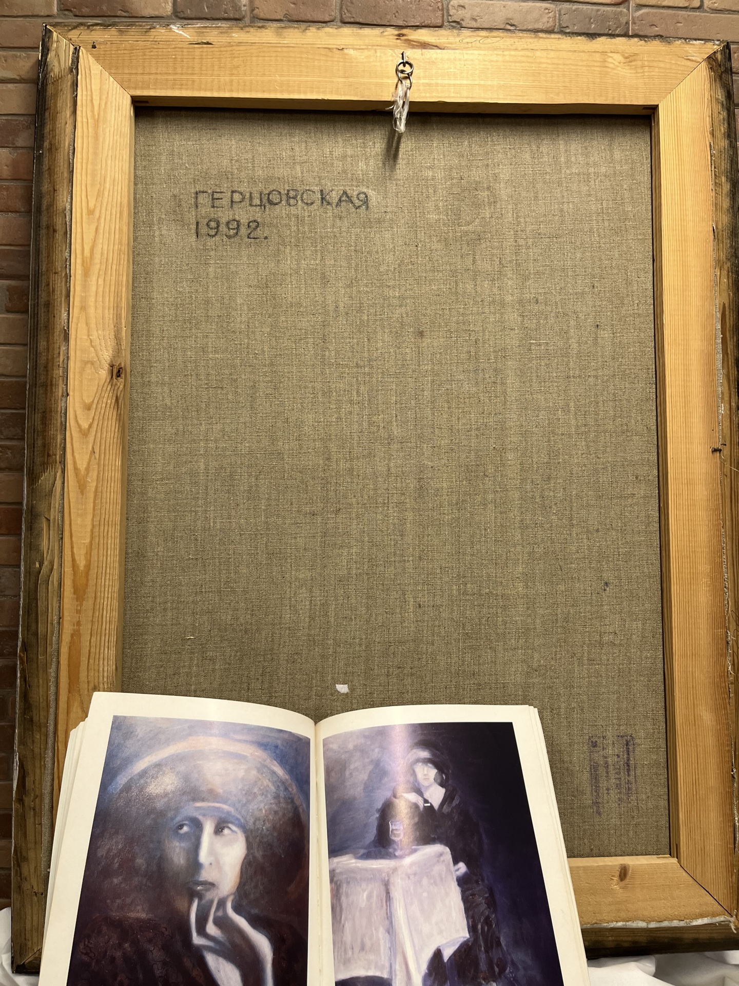 Картина с автографом, оформлена в черный с золотом багет. В отличном состоянии. На задней стороне имеется штамп и грубо нанесённая подпись фамилии с инициалами. К картине предлагается каталог с дарственной надписью художницы