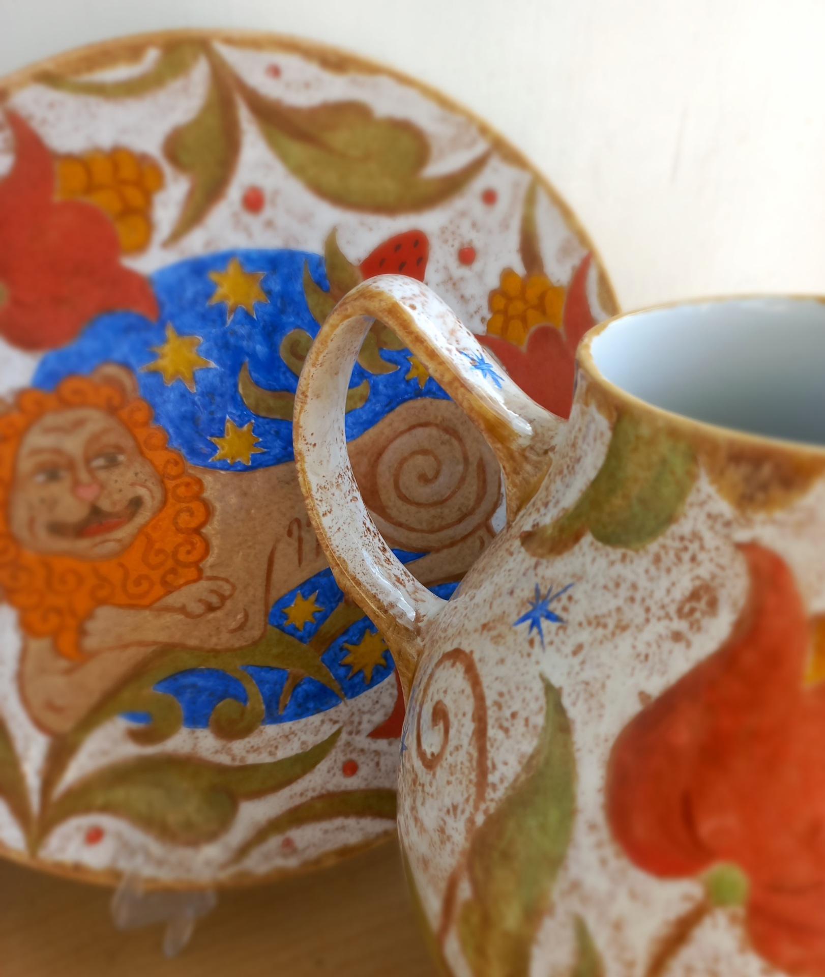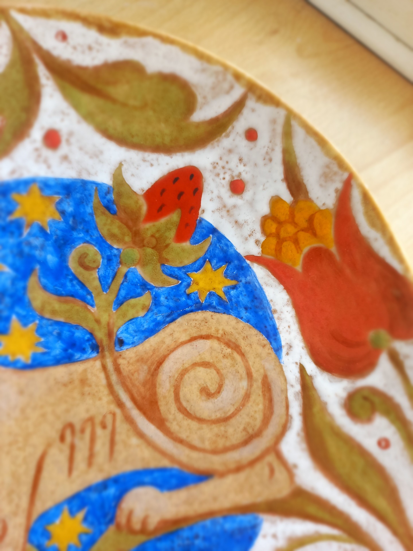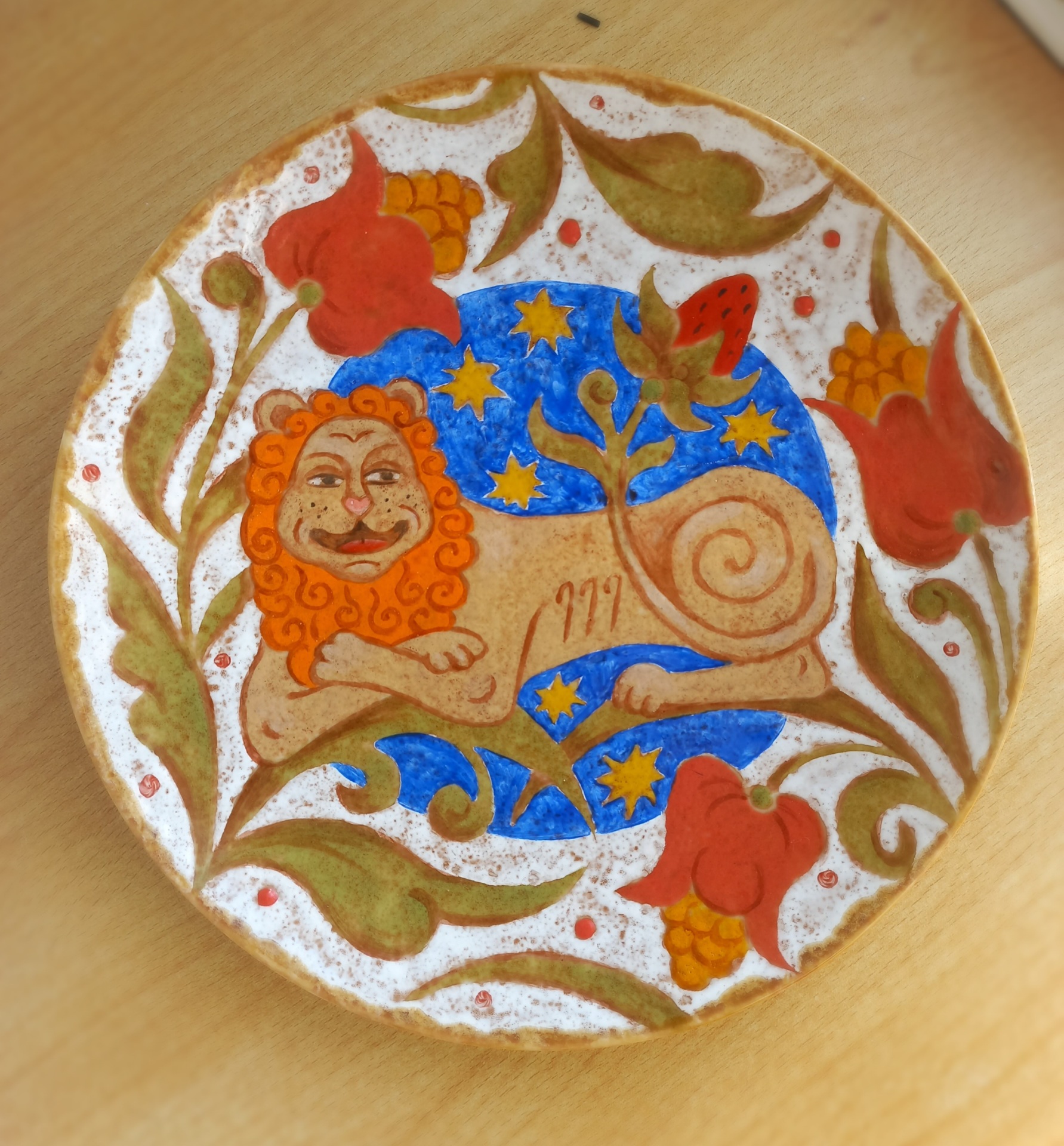 Тарелка изготовлена из фарфора, расписана вручную глазурями и надглазурными красками, прошла несколько обжигов. Можно использовать в быту.