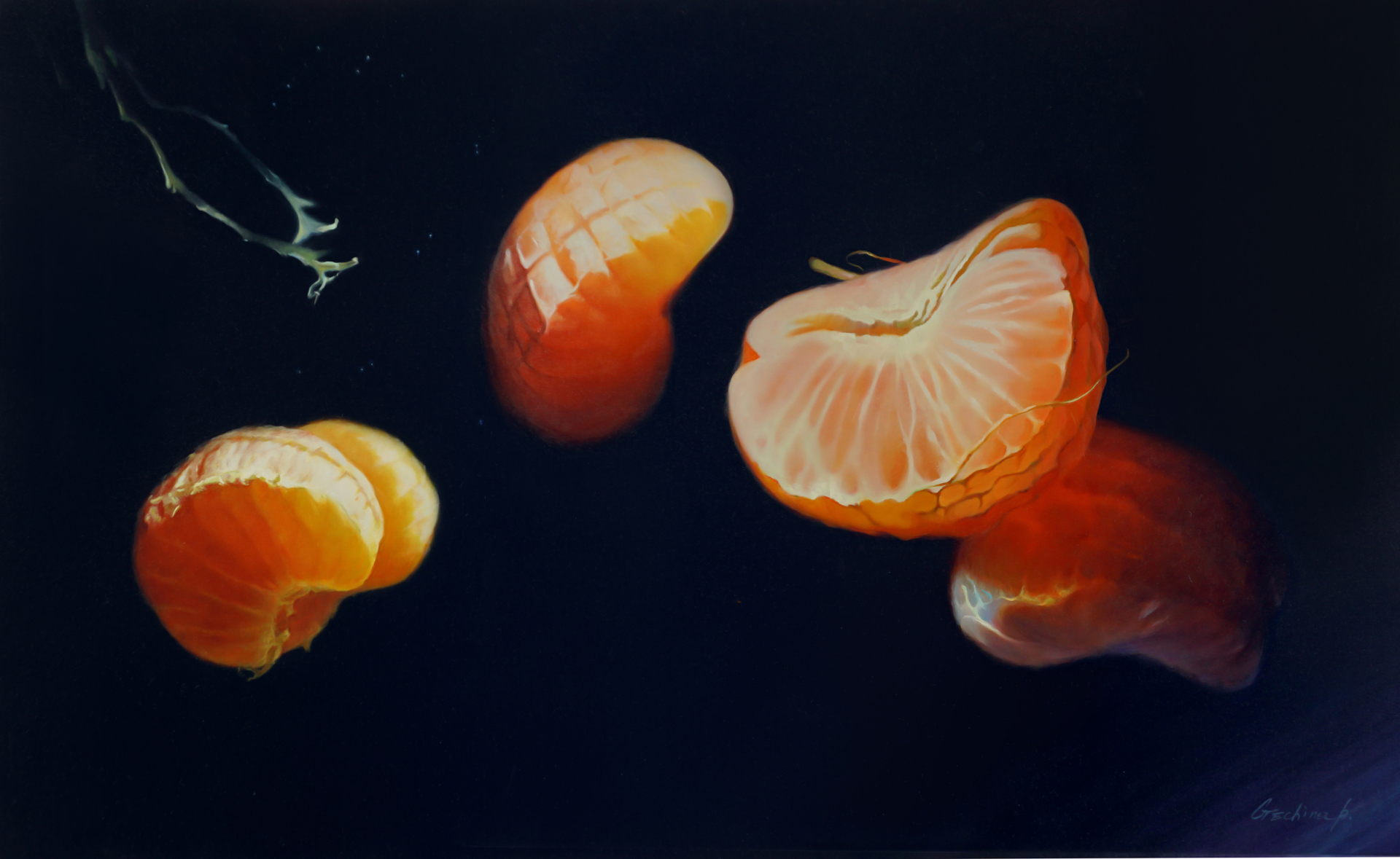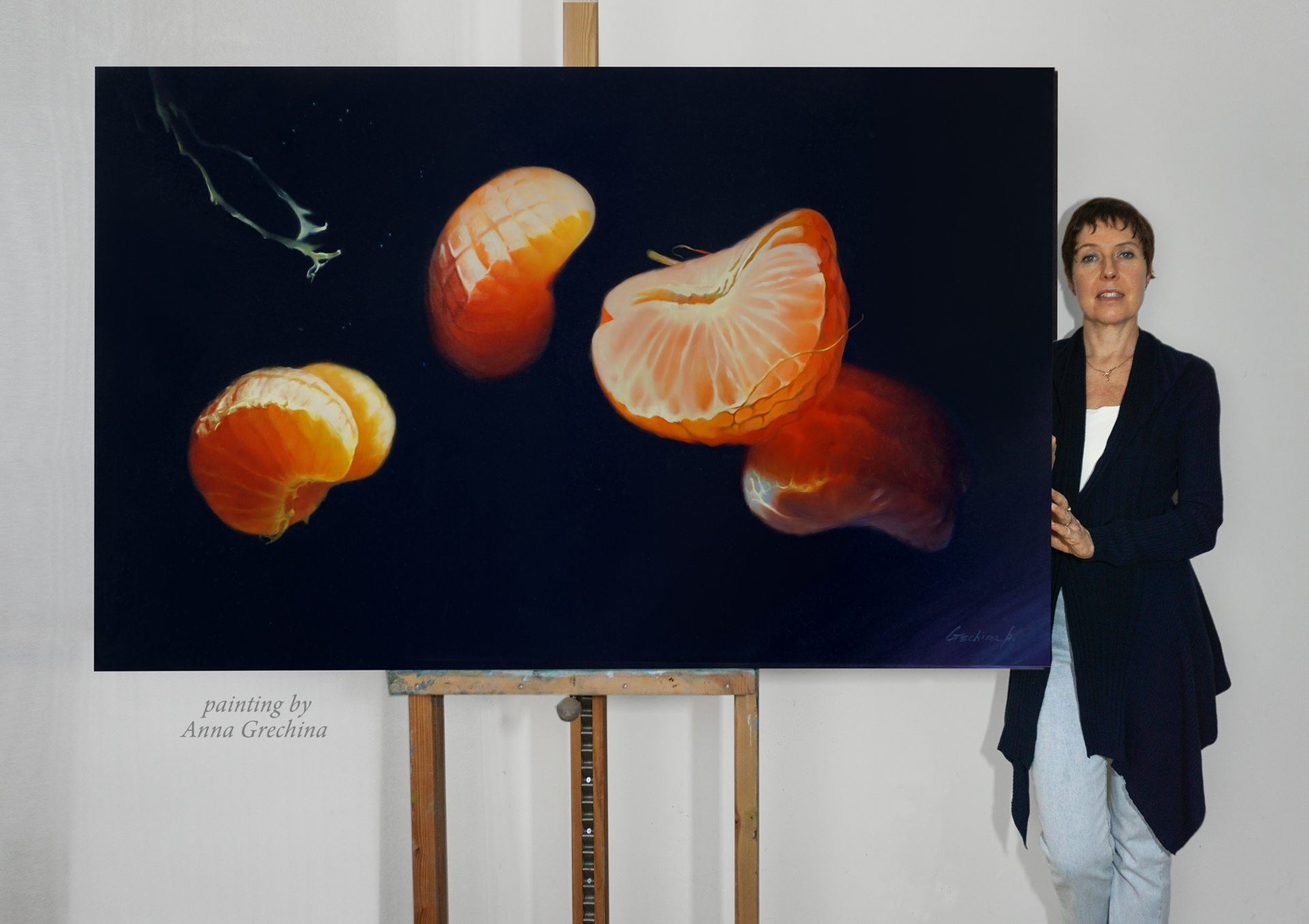Картина "Полёт мандарина". Живопись, гиперреализм.