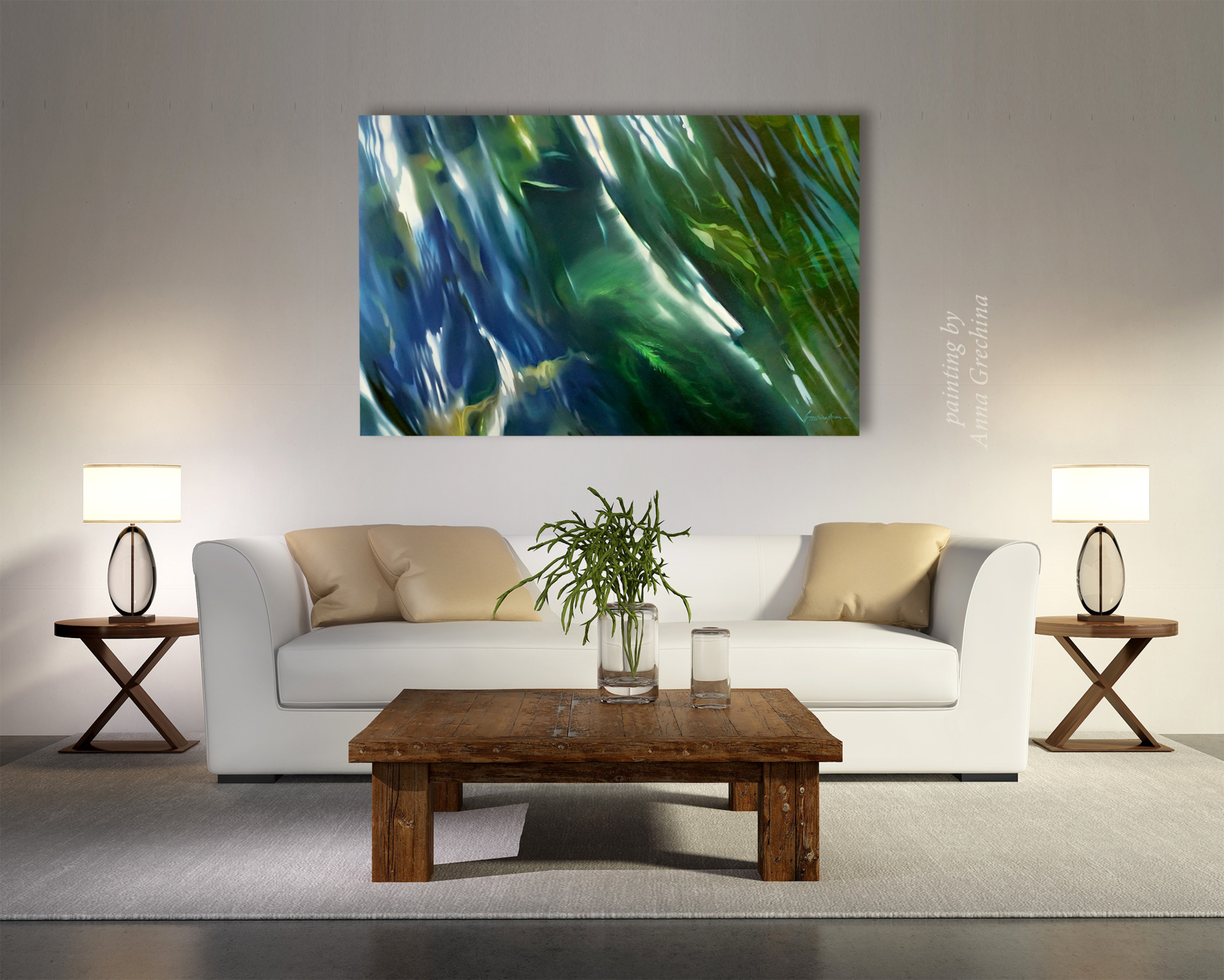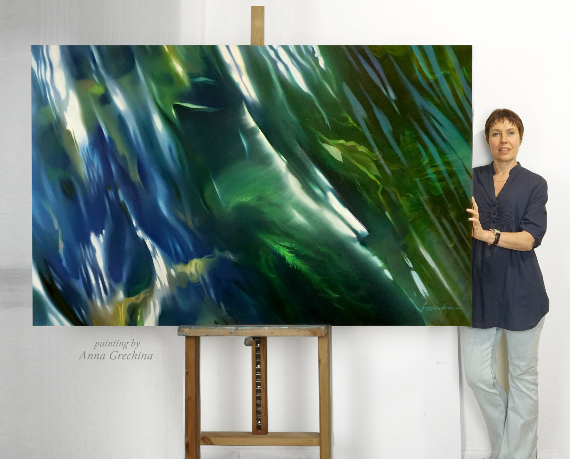 В этой картине "Течение" я сделала то, о чём давно мечтала и стремилась. Я совместила свое любимейшее живописное направление Гиперреализм, с не менее любимой Абстракцией. И назвала для себя этот стиль "Абстрактный гиперреализм". _______________ --- Авторская живопись. Гиперреализм. Используются высококачественные художественные масляные краски, испанский холст, сборный подрамник, английский покрывной лак Winsor&Newton. ПОКУПКА. --- ПОКУПКА КАРТИНЫ В МАСТЕРСКОЙ: Все работы вы можете посмотреть и приобрести у меня в мастерской в г. Москва, район Отрадное, по предварительной договоренности. --- ПРИМЕРКА КАРТИНЫ ON-LINE – в подарок! * (по желанию, возможно изготовление эскиза –привязки картины в фотографию интерьера покупателя.) --- ОПЛАТА: 100% суммы перед отправкой картины покупателю. --- ДОСТАВКА: для пересылки в другой город работа надежно упаковывается и может быть отправлена в коробе или тубусе. Почтовые и транспортные компании согласовываются с покупателем индивидуально. Стоимость почтовых и транспортных перевозок оплачивает покупатель. --- ПРИМЕРКА В ИНТЕРЬЕРЕ: Для жителей Москвы есть возможность примерки картин в интерьере. Перевозку картин для примерки оплачивает покупатель. --- КАРТИНЫ НА ЗАКАЗ: по желанию заказчика, я могу сделать повтор своей работы в другом размере, если это нужно для интерьера. Срок изготовления заказов от 2х месяцев, точное повторение невозможно. При выполнении заказа берется аванс. Стоимость заказа и сумма аванса обговаривается индивидуально. --- Для отправки картины в другое государство возможно изготовление сертификата на вывоз от Министерства культуры Российской Федерации.