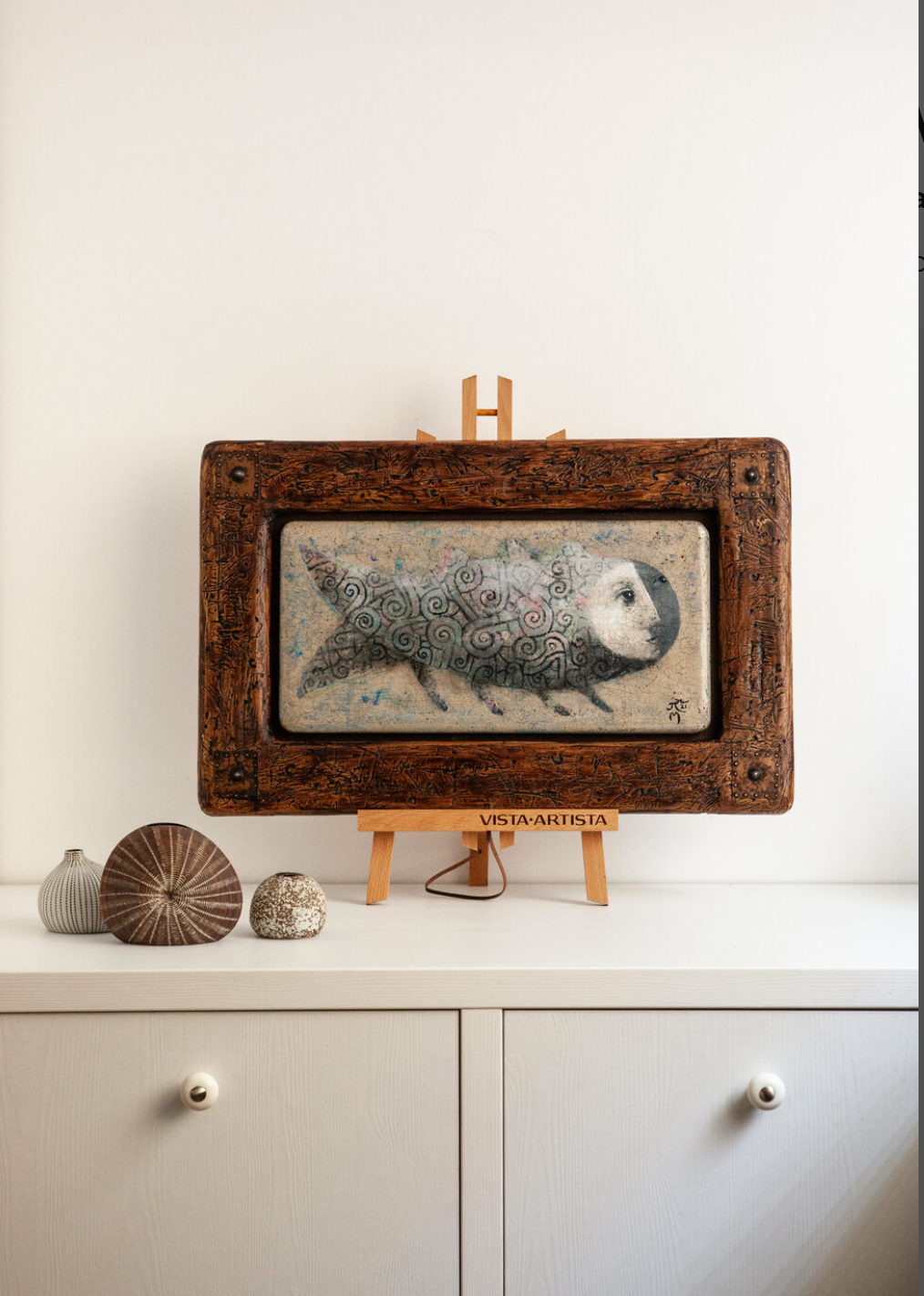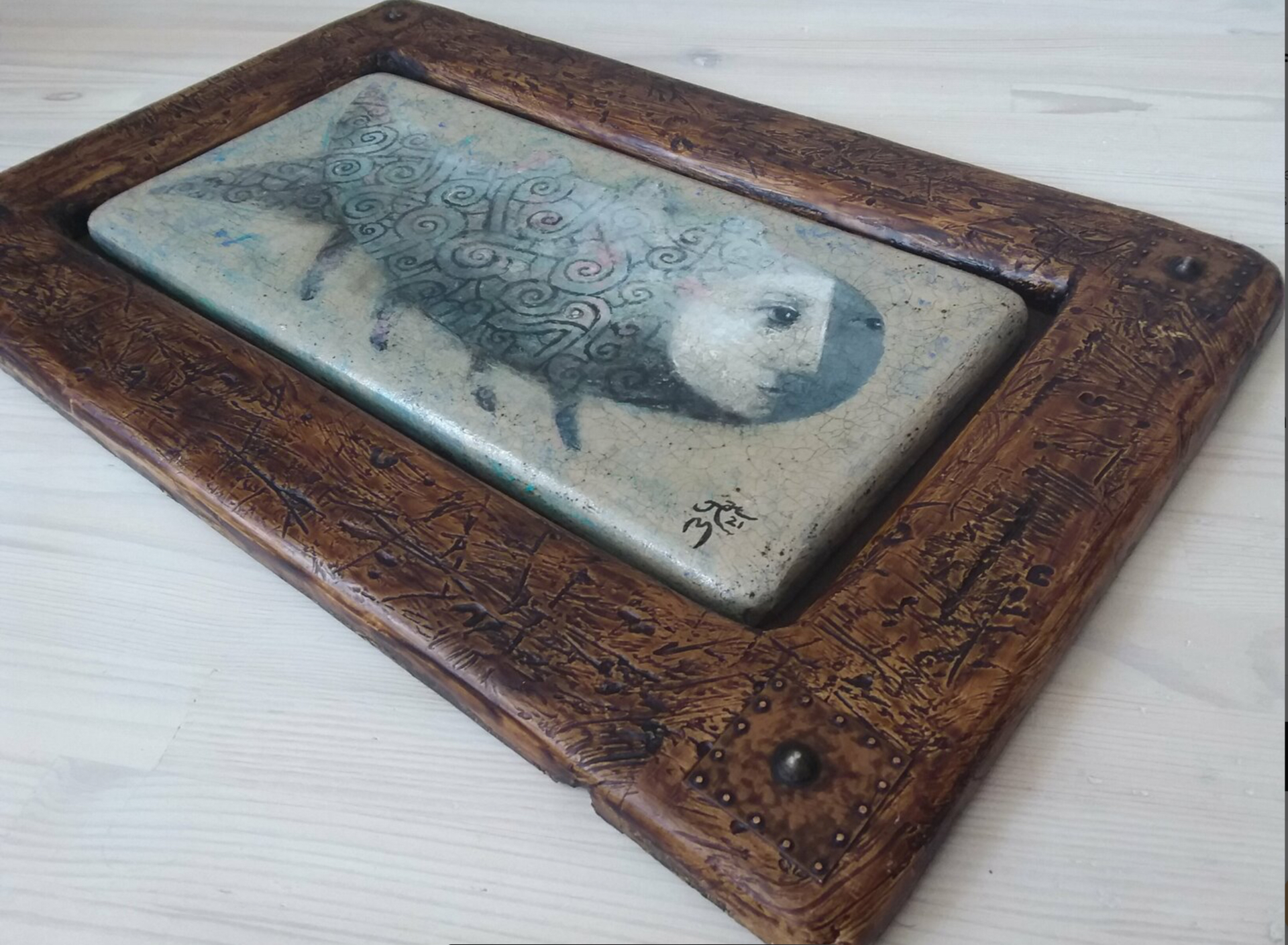 Работа и рама ручной работы выполнена на дереве. Размер указан с учетом рамы. Все детали касательно приобретения работы можно обсудить в личном общении через Вотсапп