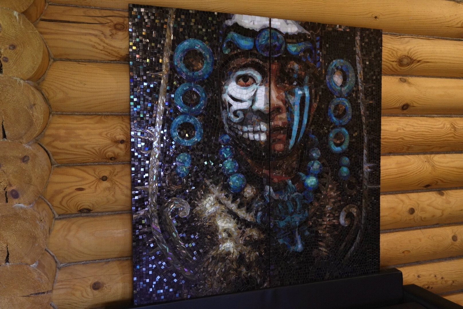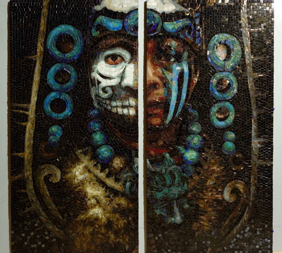 2 части каждая по 50см по узкой стороне. Вместе 1м2. Стеклянная мозаика. Эпоксидная затирка. Основа алюминиевая композитная панель. Толщина 7-8 мм. Возможен просмотр по видеосвязи. Так как мозаику очень сложно фотографировать.
