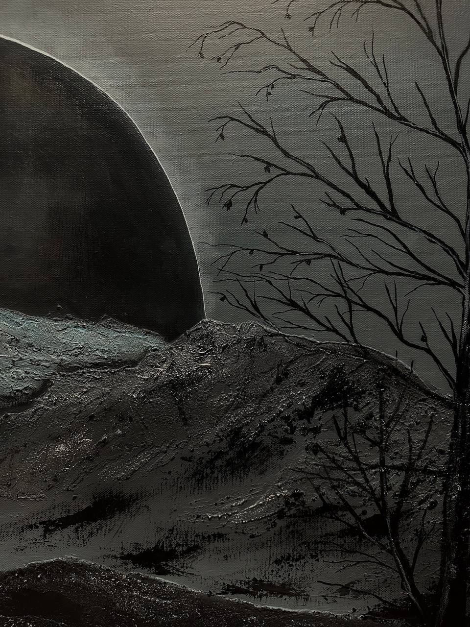 Атмосфера сверкающей таинственности, загадочного и мрачного вечера вызывает смешанные чувства. Окинув взором полумрачный горный массив с его легким блеском, ощущая легкую дрожь в теле и одновременно восторг, на душе становится тревожно. Ожидая встретить, освещенный лунным светом и усеянный сияющими звездами вечерний пейзаж, я наблюдаю затмение!
